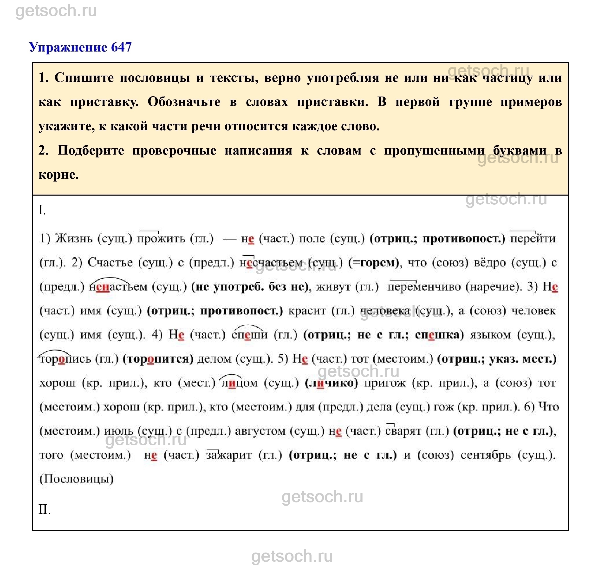 Рассмотрим ответы на Упражнение 647 из учебника по русскому языку для 7 класса Разумовской