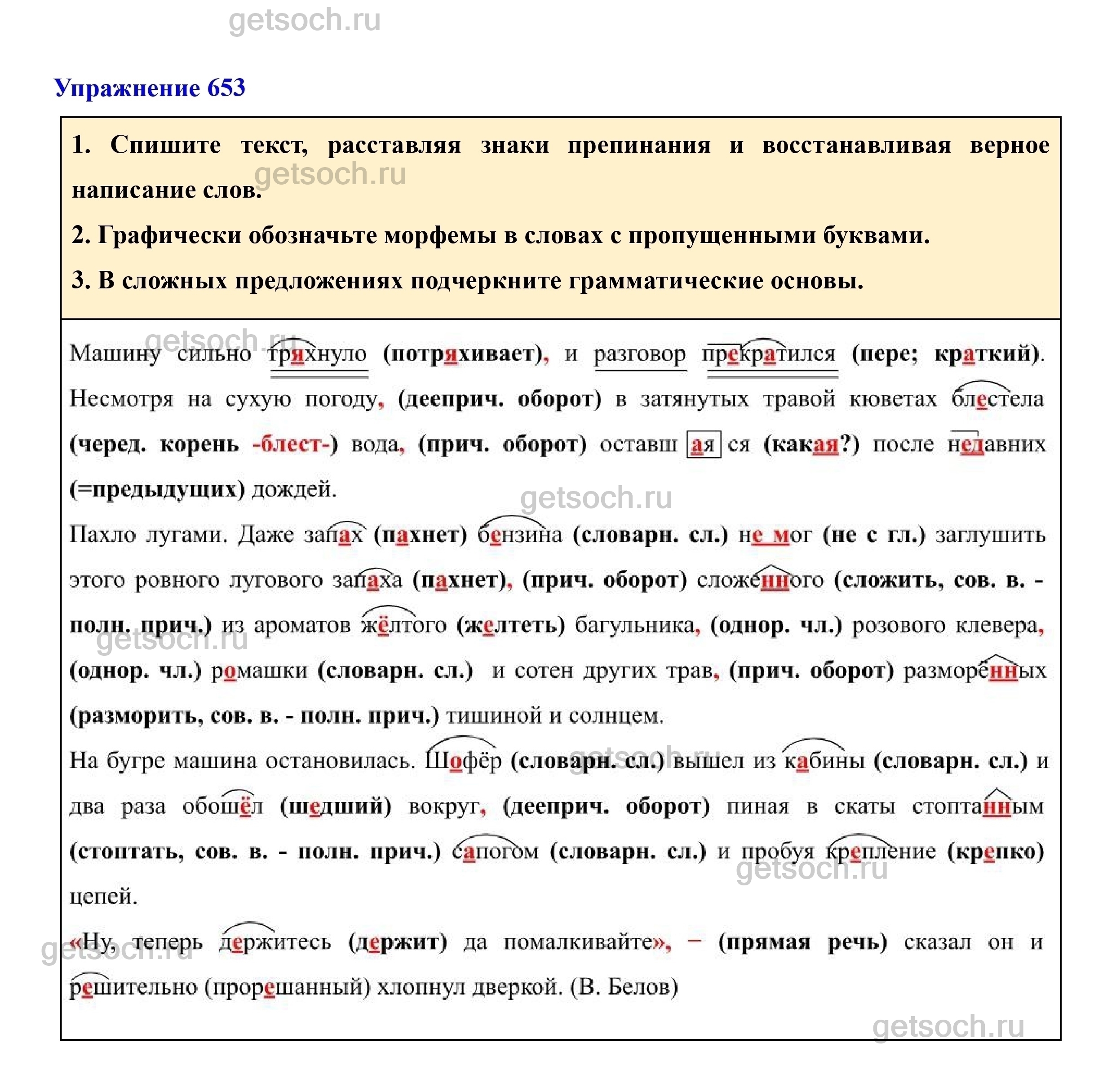 Рассмотрим ответы на Упражнение 653 из учебника по русскому языку для 7 класса Разумовской