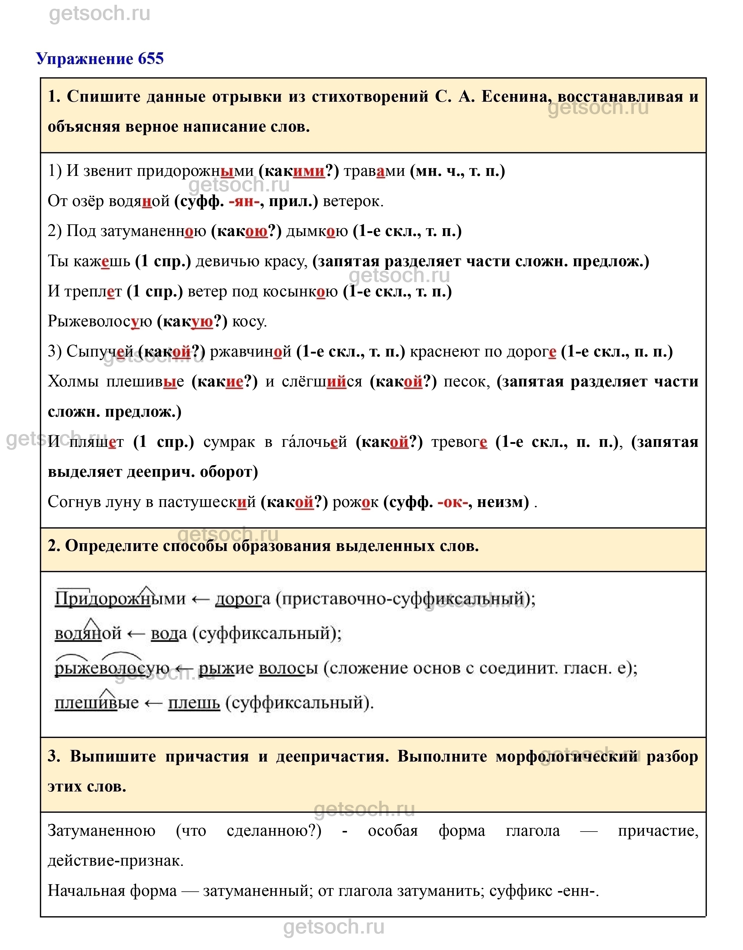 Рассмотрим ответы на Упражнение 655 из учебника по русскому языку для 7 класса Разумовской