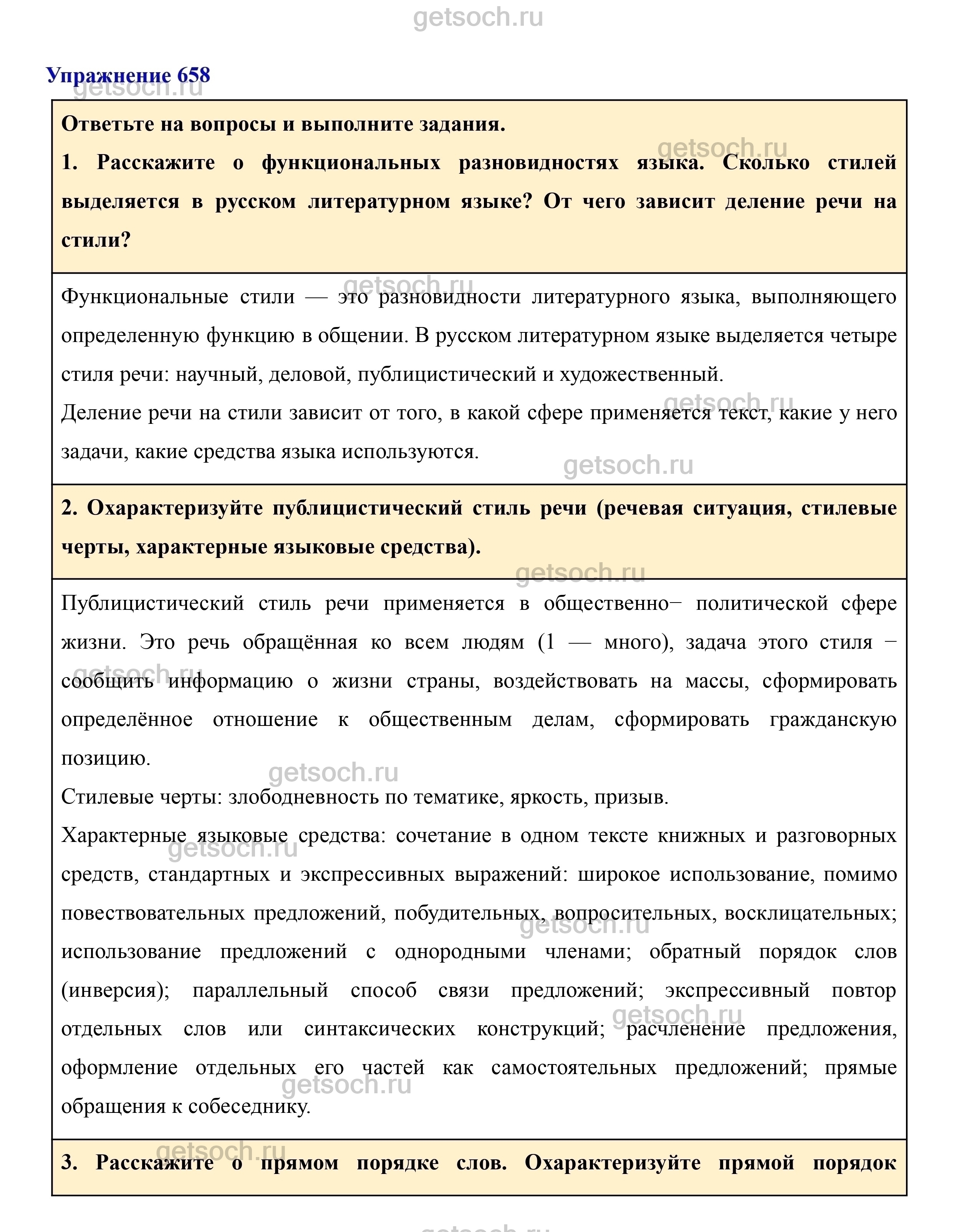 Рассмотрим ответы на Упражнение 658 из учебника по русскому языку для 7 класса Разумовской