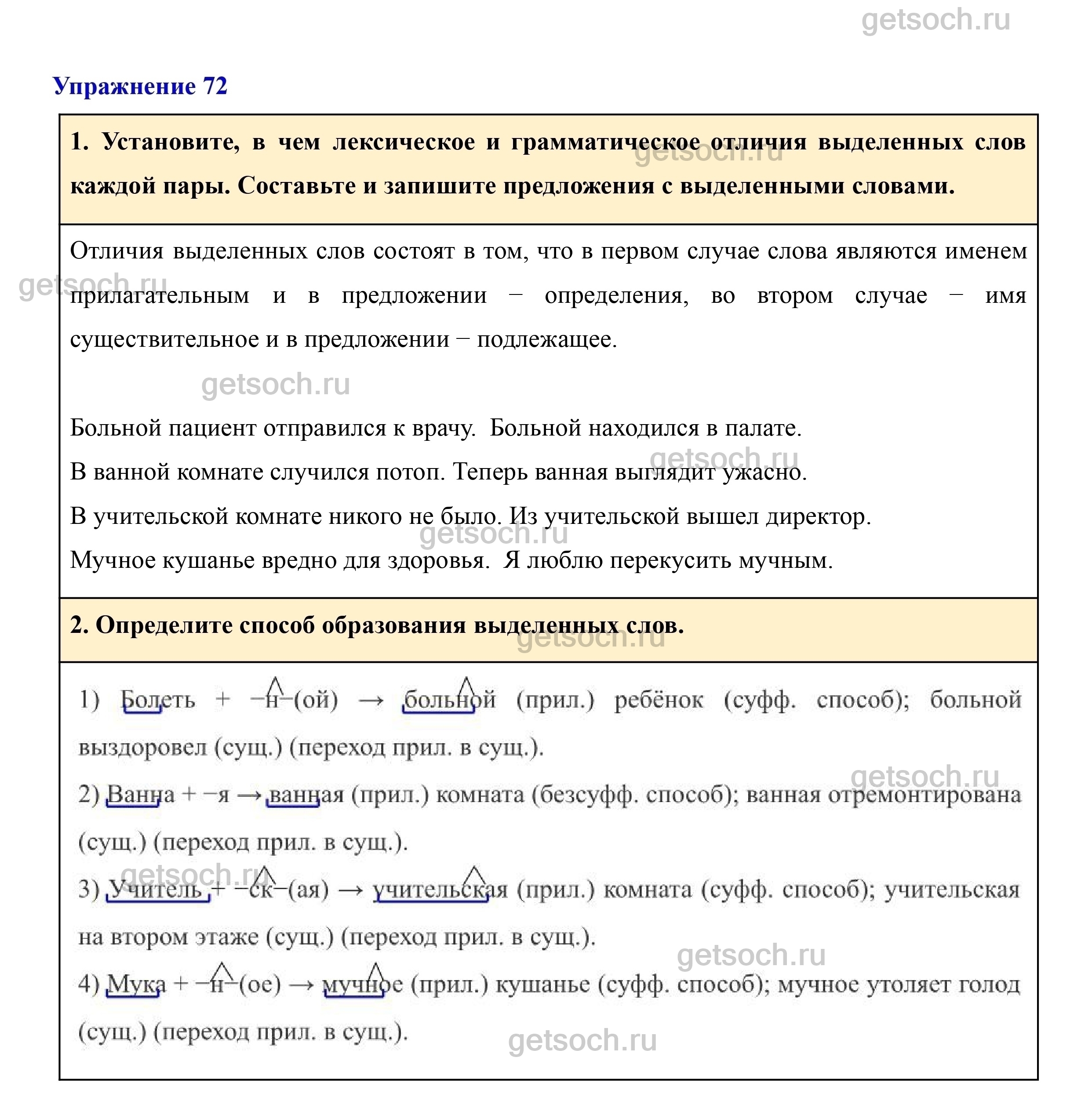 Рассмотрим ответы на Упражнение 72 из учебника по русскому языку для 7 класса Разумовской