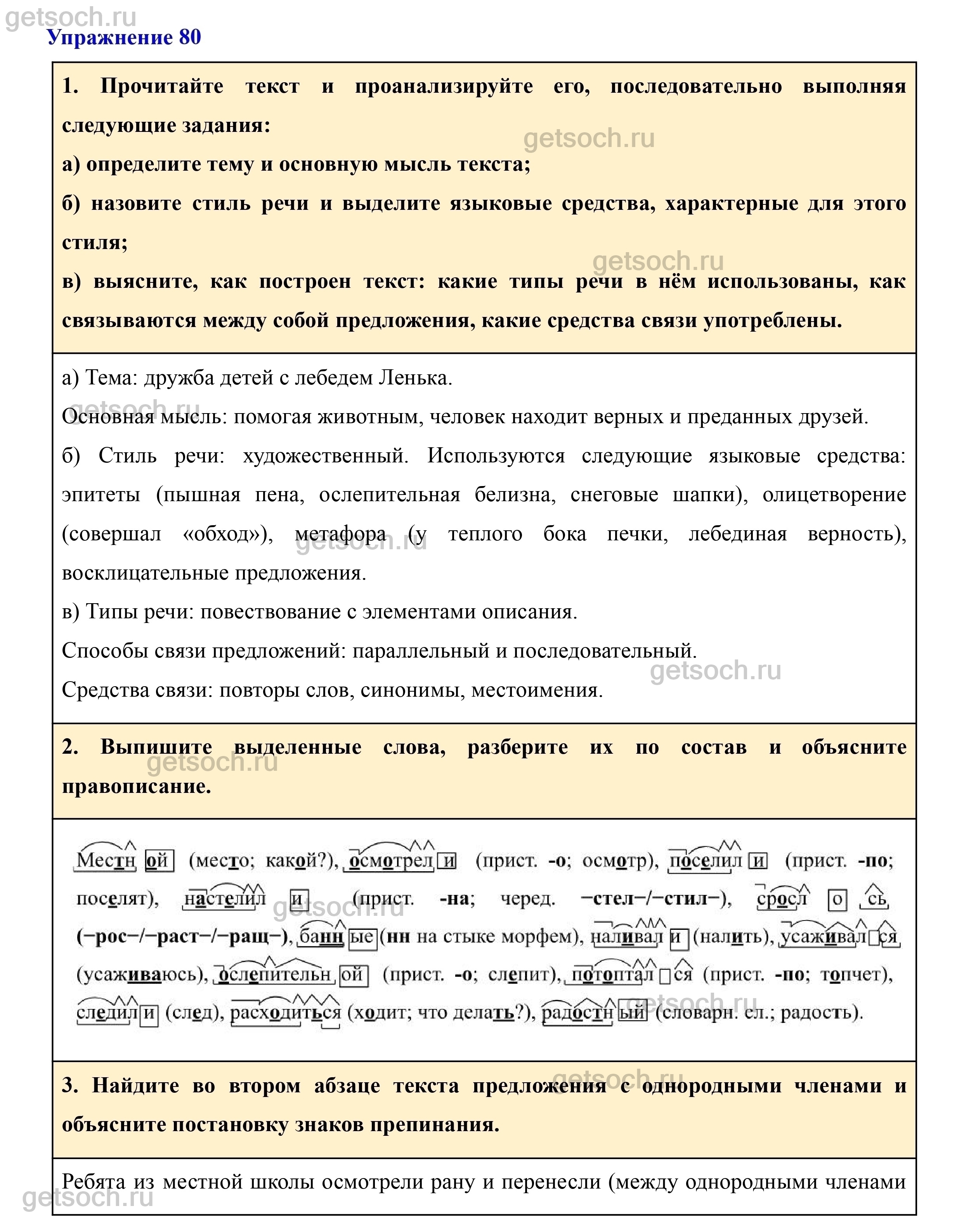 Рассмотрим ответы на Упражнение 80 из учебника по русскому языку для 7 класса Разумовской