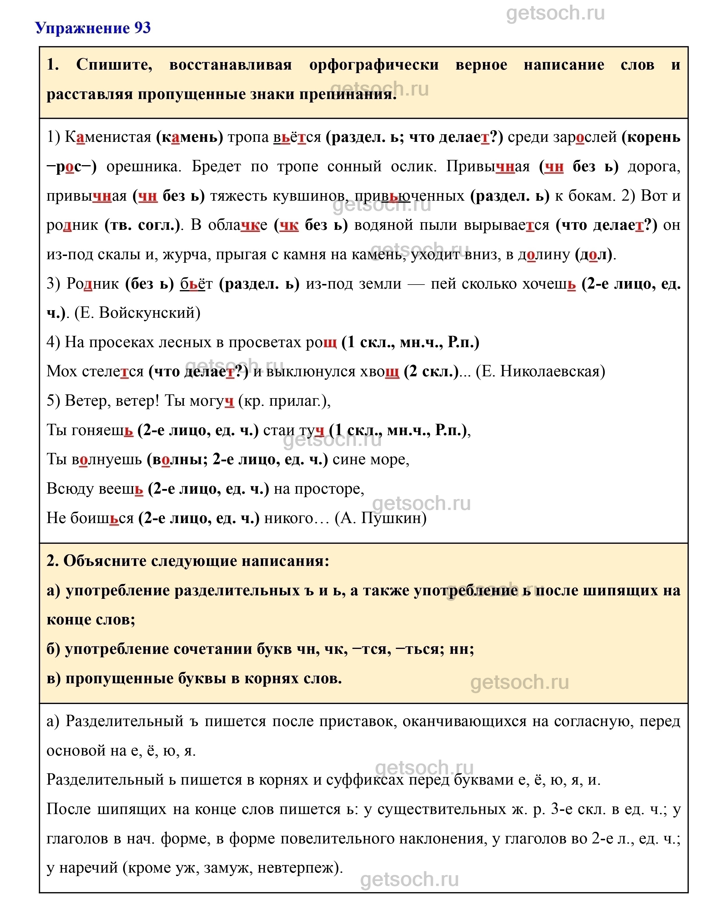 Рассмотрим ответы на Упражнение 93 из учебника по русскому языку для 7 класса Разумовской