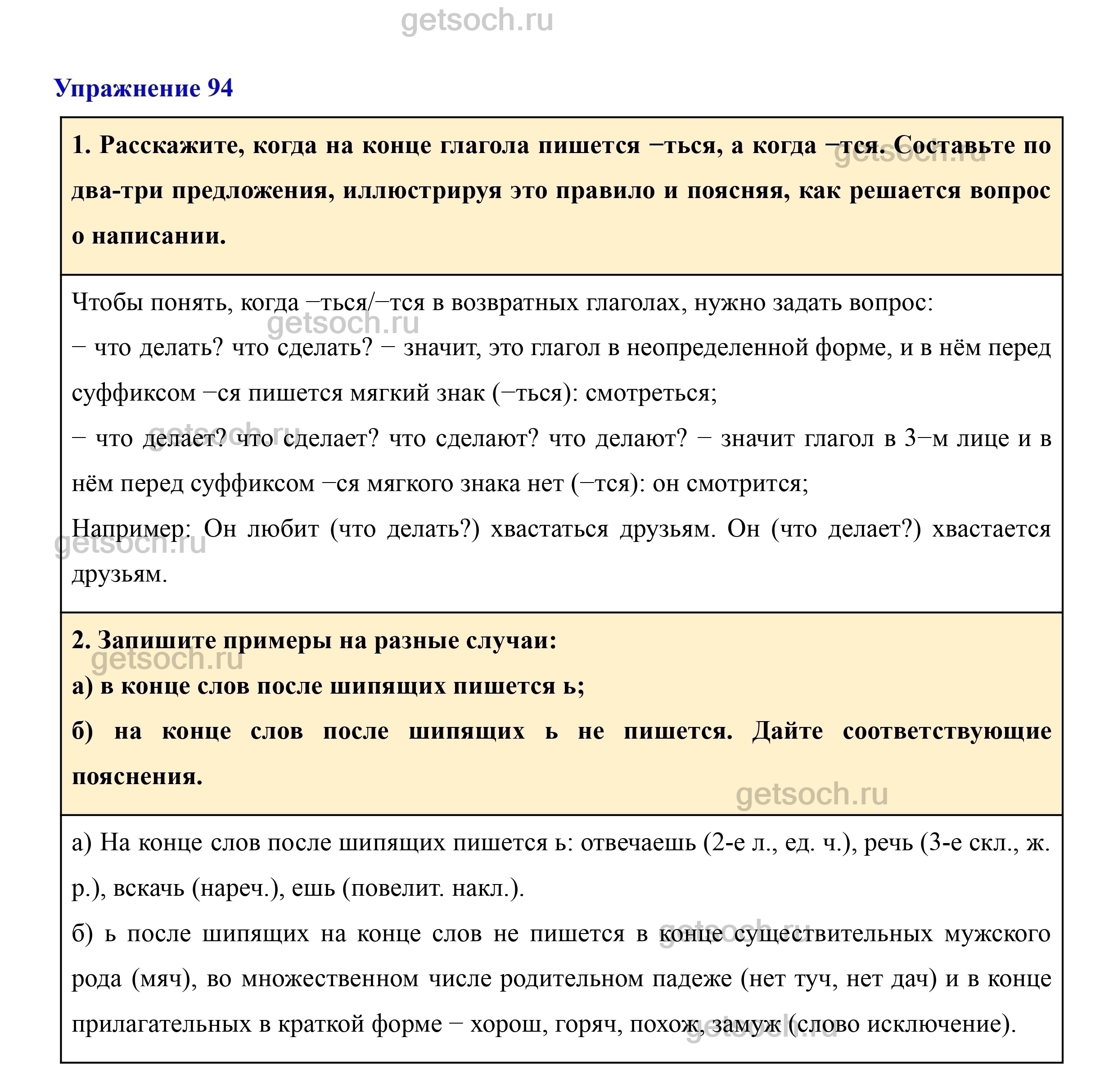 1. Расскажите, когда на конце глагола пишется −ться, а когда −тся. Составьте по два-три предложения, иллюстрируя это правило и поясняя, как решается вопрос о написании.