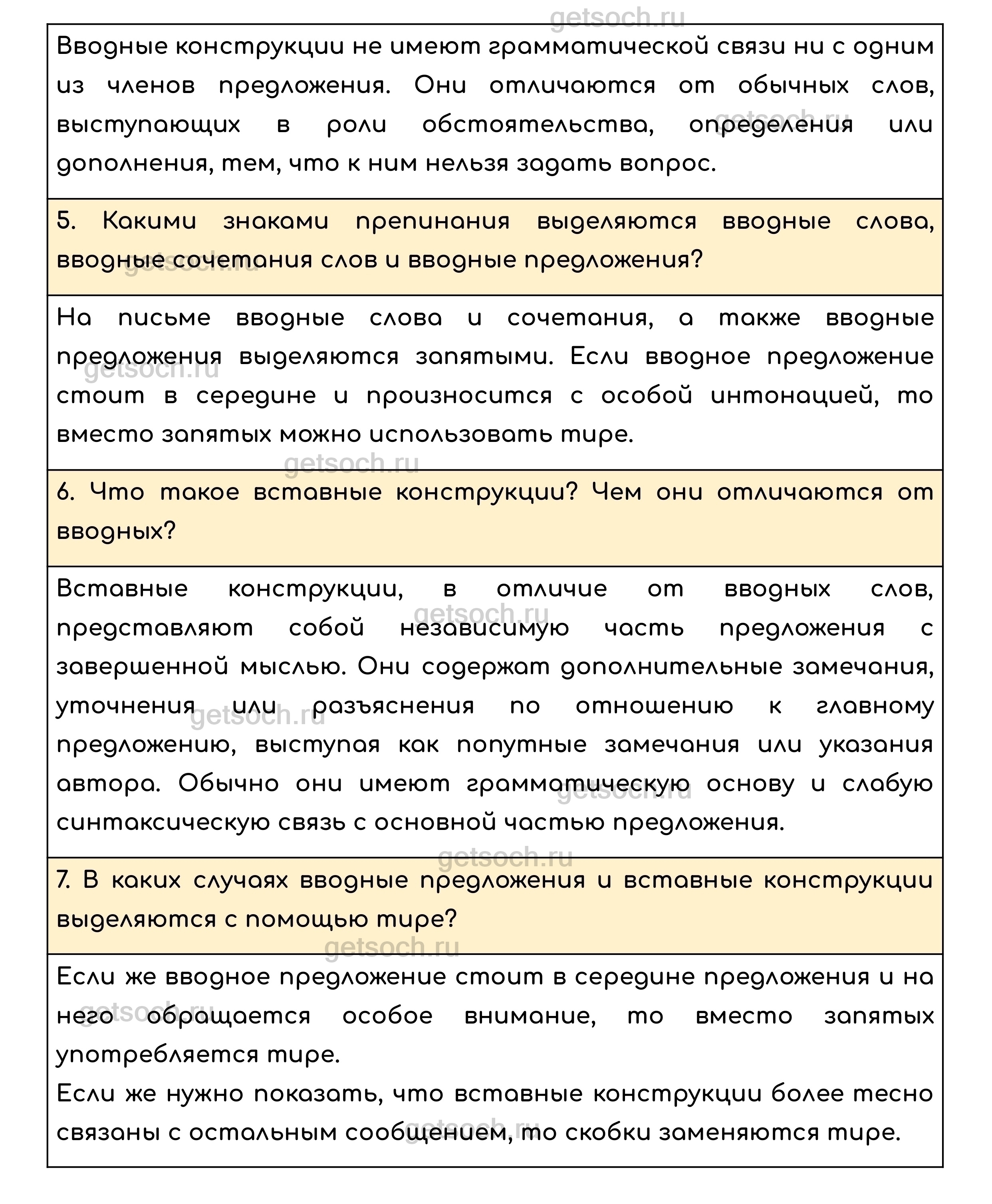 5. Какими знаками препинания выделяются вводные слова, вводные сочетания слов и вводные предложения?