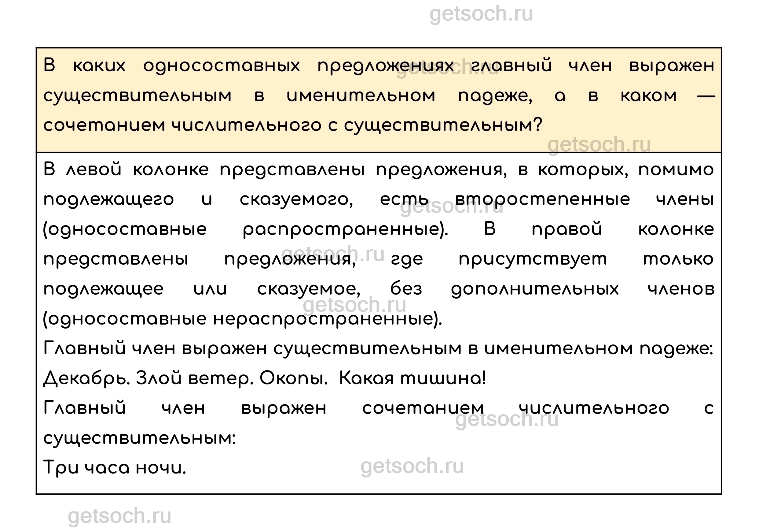 В каких односоставных предложениях главный член выражен существительным в именительном падеже, а в каком — сочетанием числительного с существительным?