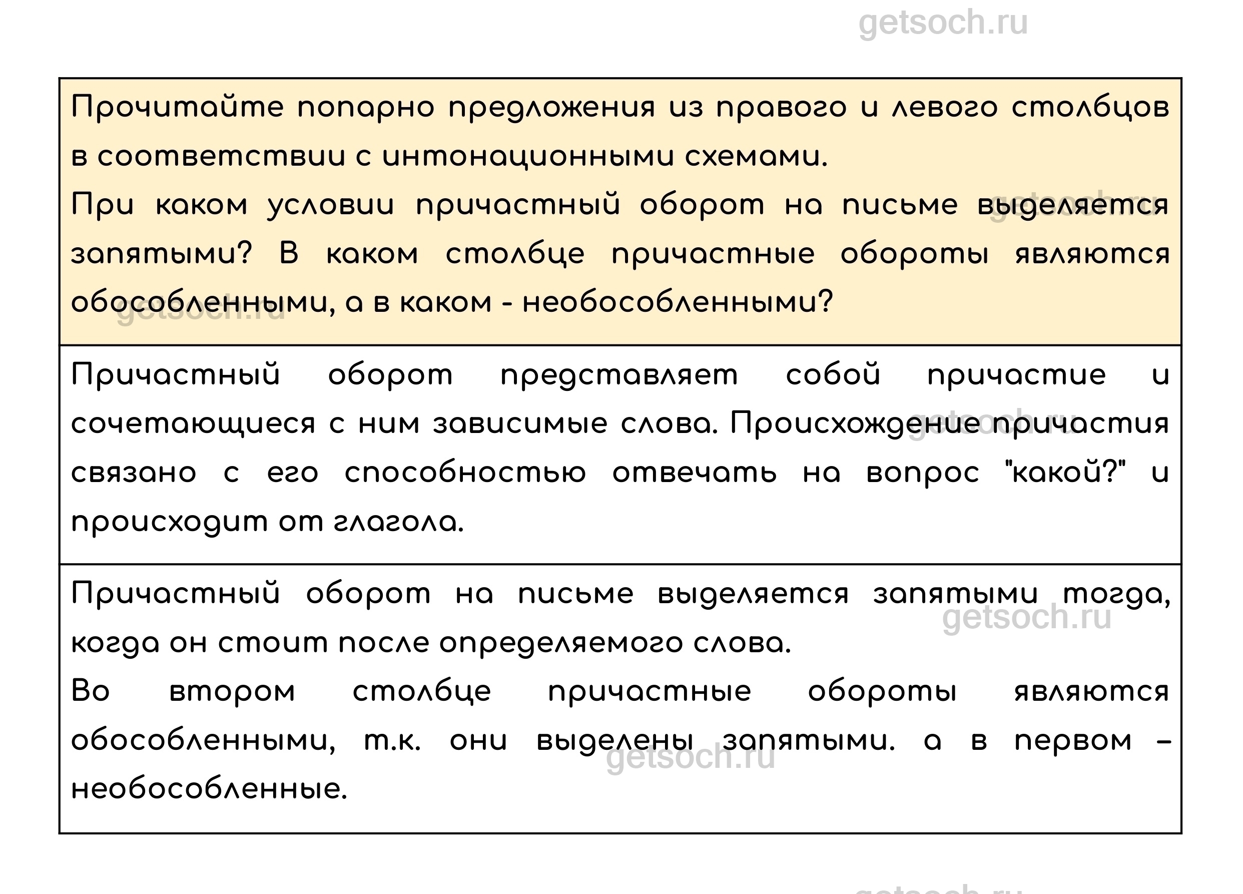 При каком условии причастный оборот на письме выделяется запятыми? В каком столбце причастные обороты являются обособленными, а в каком – необособленными?