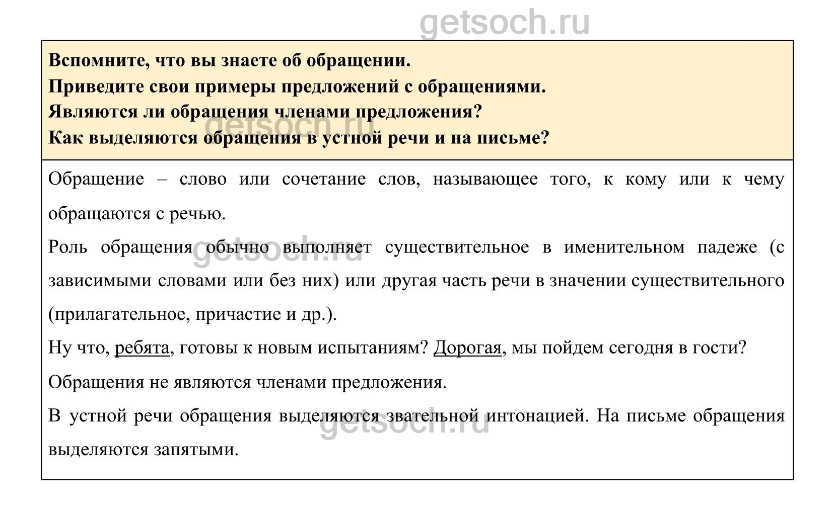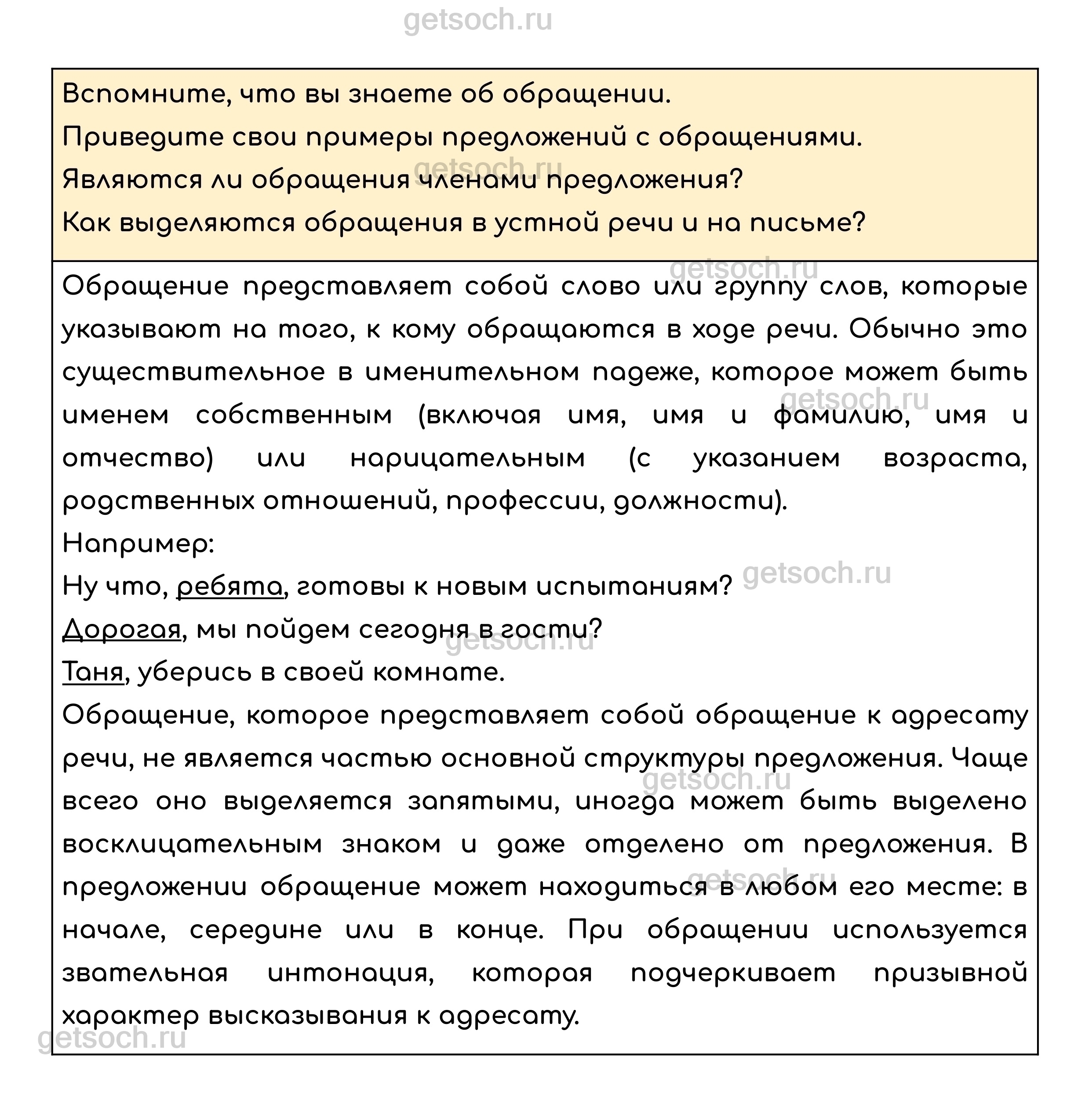 Вспомните, что вы знаете об обращении.