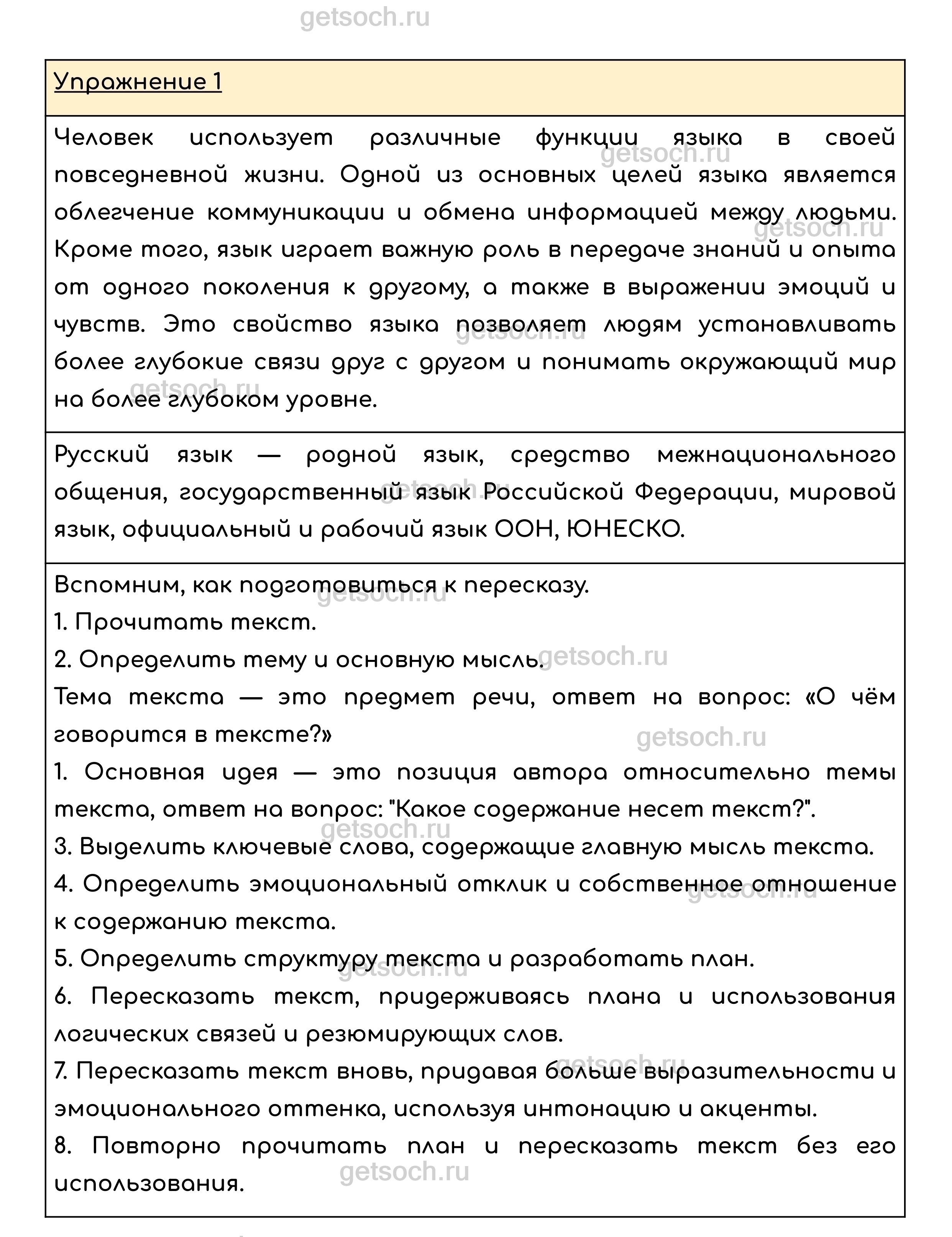 Упражнение 1. Прочитайте. Выпишите выделенные словосочетания, называющие различные функции русского языка в современном мире. Перескажите (устно) содержание текста, опираясь на значение выписанных словосочетаний.