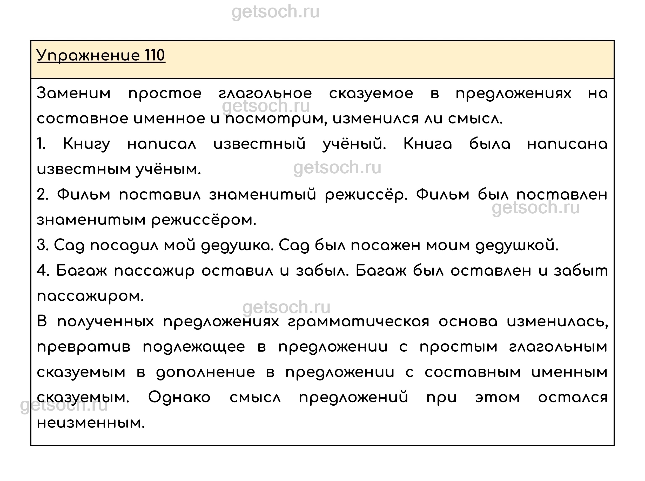 Упражнение 110. Перестройте предложения, заменяя простое глагольное сказуемое составным именным. Как при этом изменяется смысл предложения?