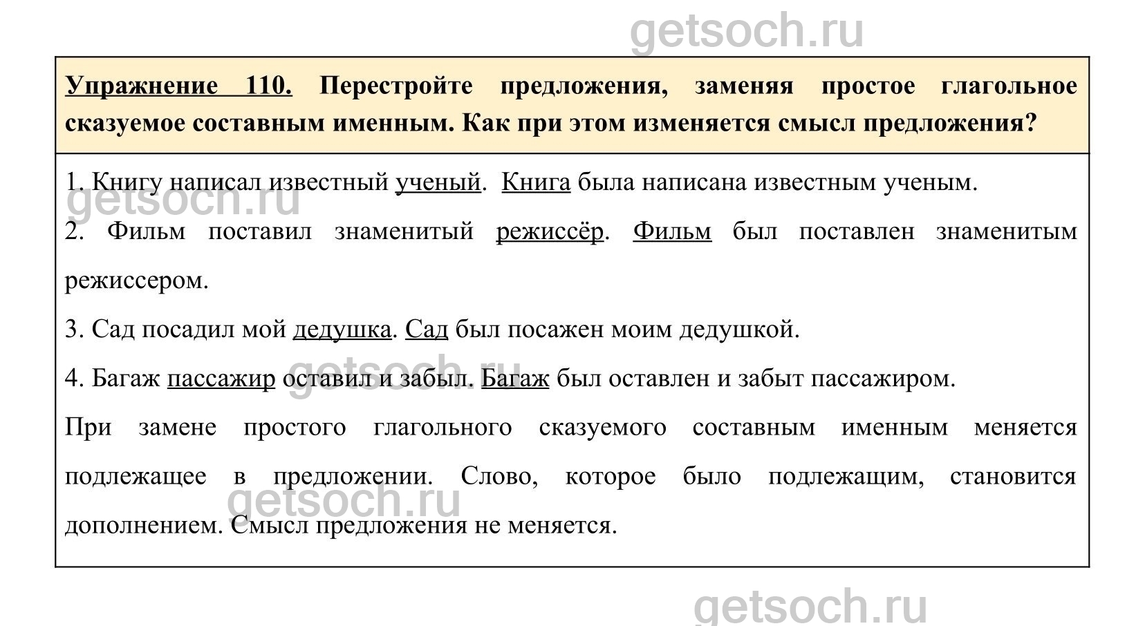 Рассмотрим ответы на Упражнение 110 из учебника по русскому языку для 8 класса Ладыженской