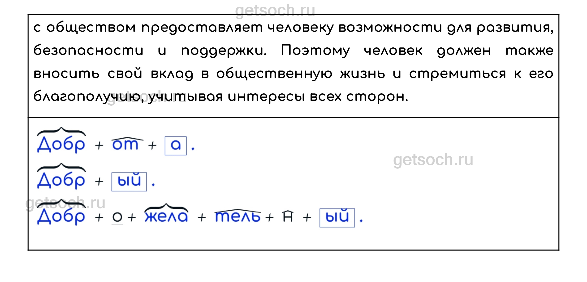 • Найдите в тексте слова, образованные от слова добро, и выполните их морфемный разбор. Объясните смысл 7-го предложения. Согласны ли вы с этим утверждением? Приведите аргументы.