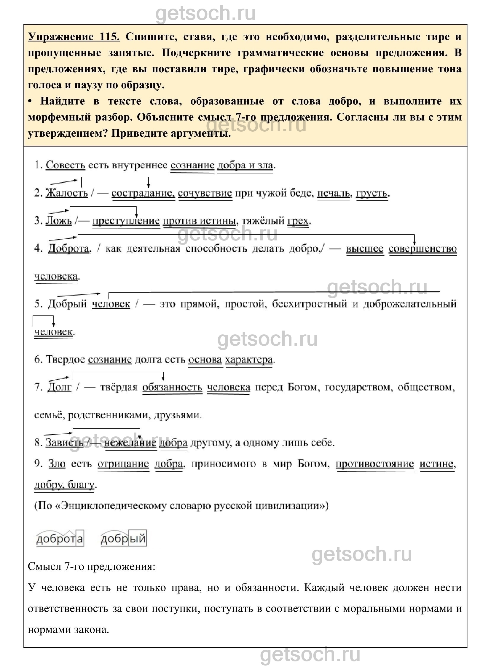 Рассмотрим ответы на Упражнение 115 из учебника по русскому языку для 8 класса Ладыженской