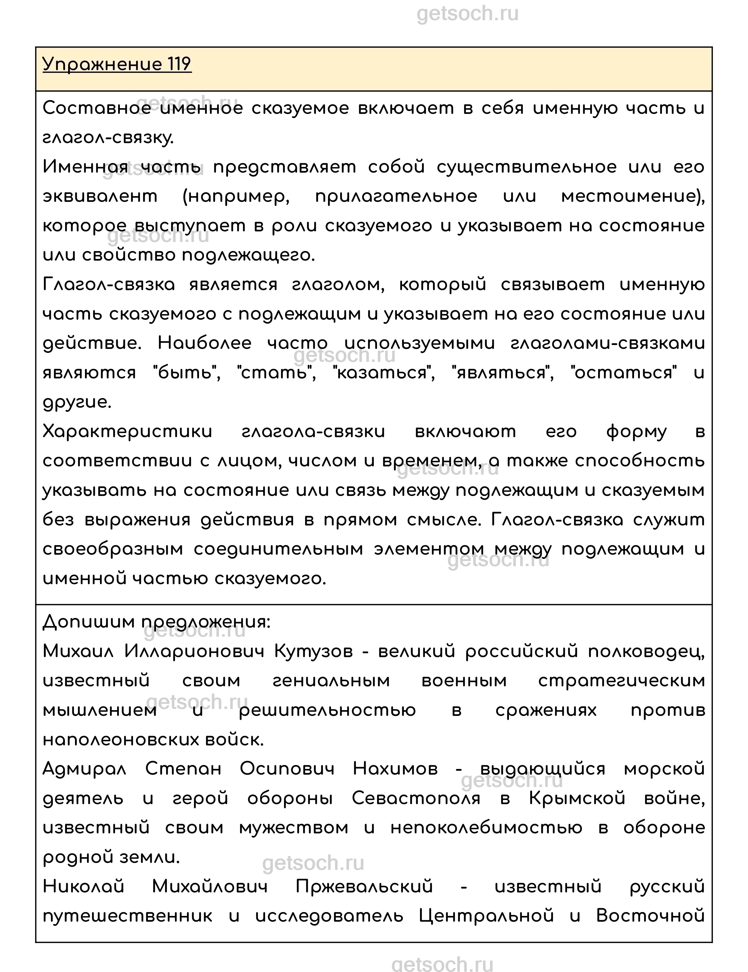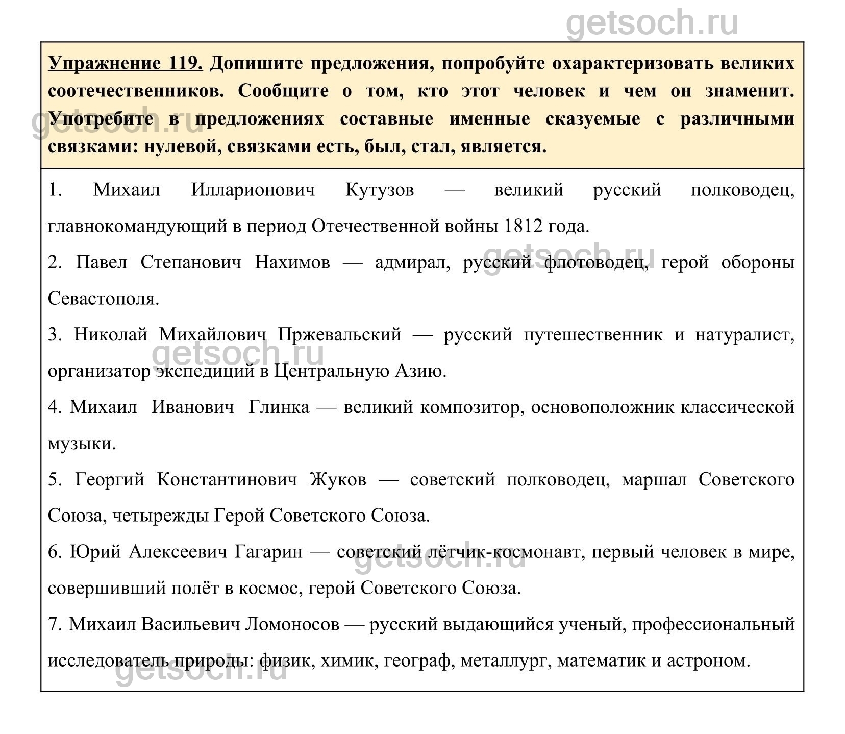 Упражнение 119. Допишите предложения, попробуйте охарактеризовать великих соотечественников. Сообщите о том, кто этот человек и чем он знаменит. Употребите в предложениях составные именные сказуемые с различными связками: нулевой, связками есть, был, стал, является.