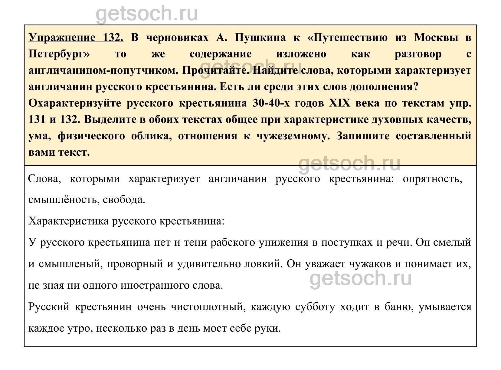 Упражнение 132. В черновиках А. Пушкина к «Путешествию из Москвы в Петербург» то же содержание изложено как разговор с англичанином-попутчиком. Прочитайте. Найдите слова, которыми характеризует англичанин русского крестьянина. Есть ли среди этих слов дополнения?