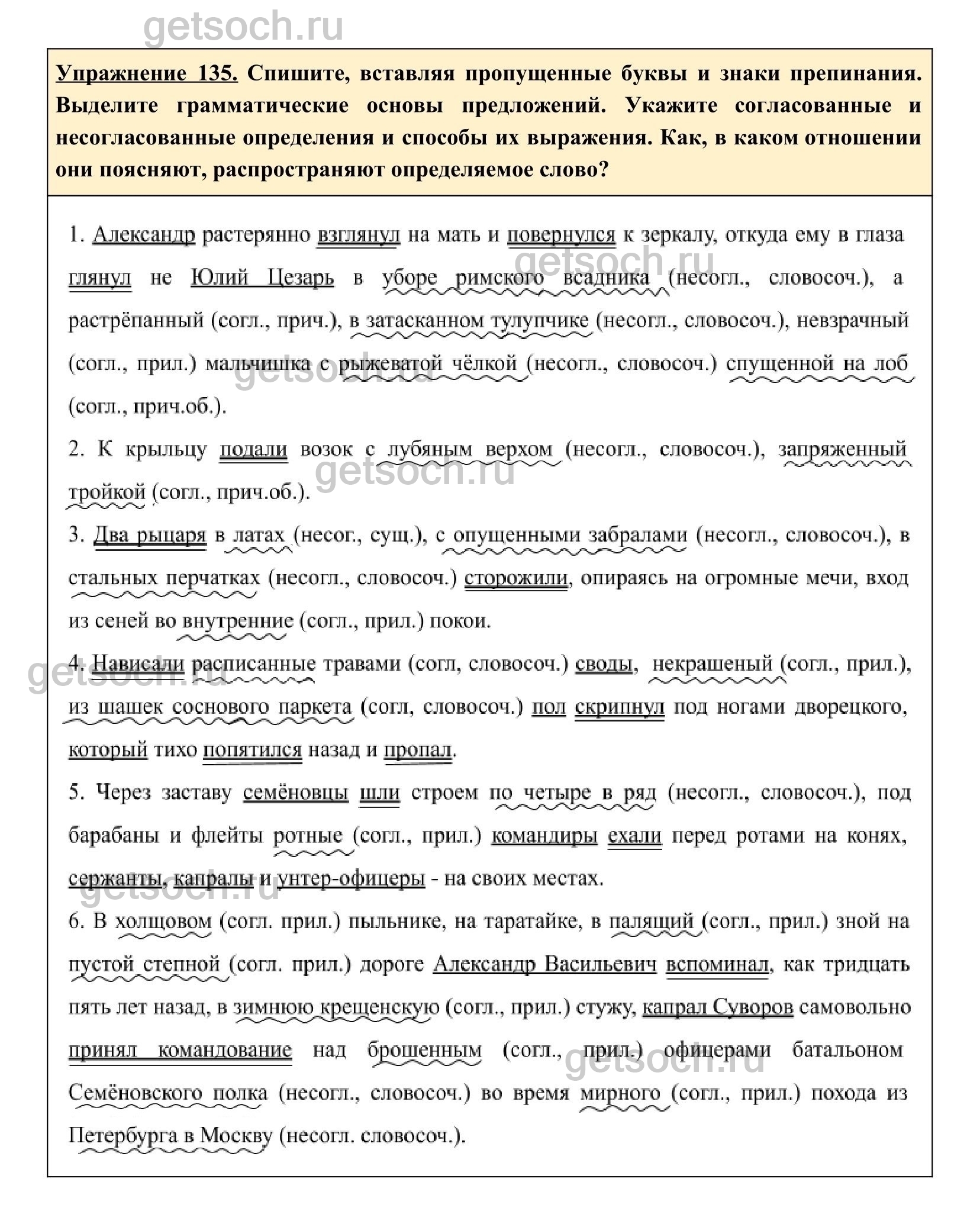 Рассмотрим ответы на Упражнение 135 из учебника по русскому языку для 8 класса Ладыженской