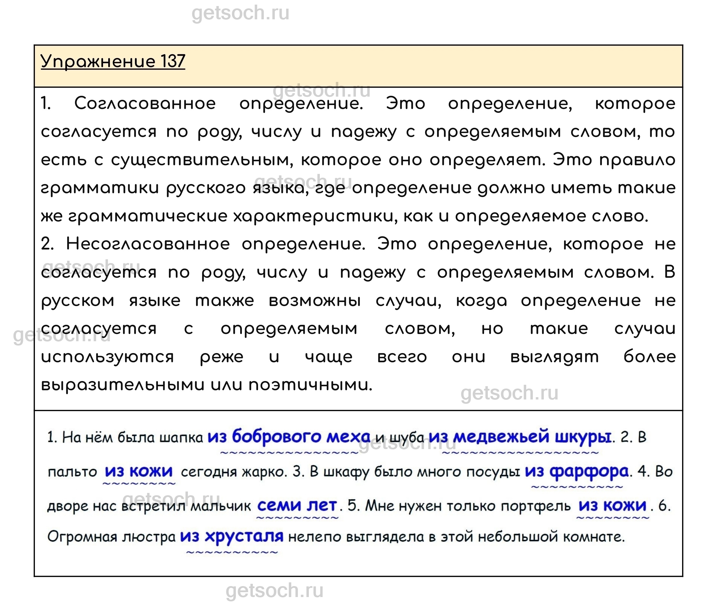 Рассмотрим ответы на Упражнение 137 из учебника по русскому языку для 8 класса Ладыженской