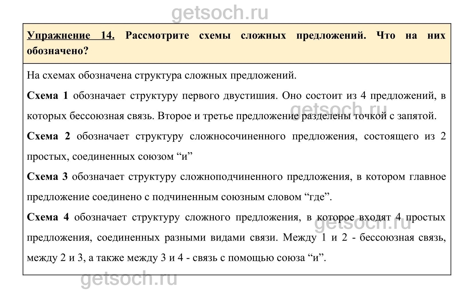Упражнение 14. Рассмотрите схемы сложных предложений. Что на них обозначено?