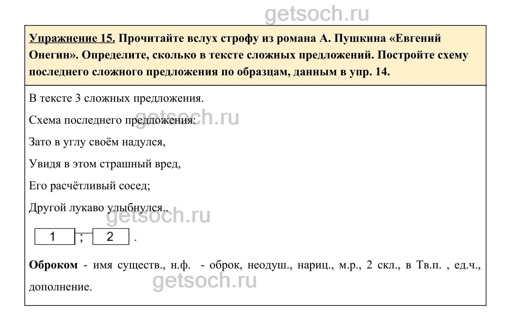 Упражнение 15. Прочитайте вслух строфу из романа А. Пушкина «Евгений Онегин». Определите, сколько в тексте сложных предложений. Постройте схему последнего сложного предложения по образцам, данным в упр. 14.