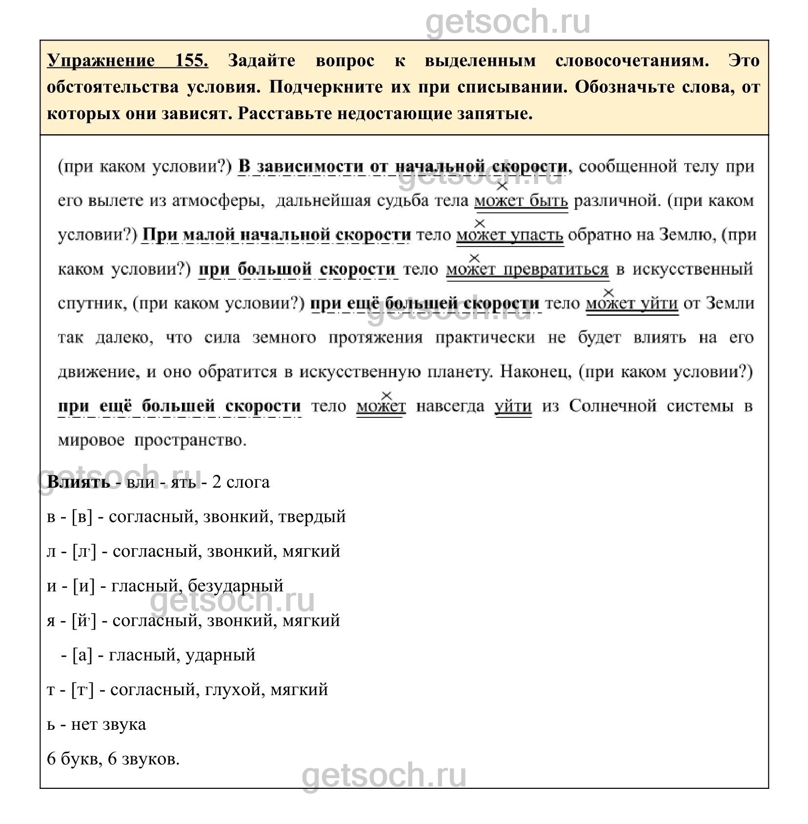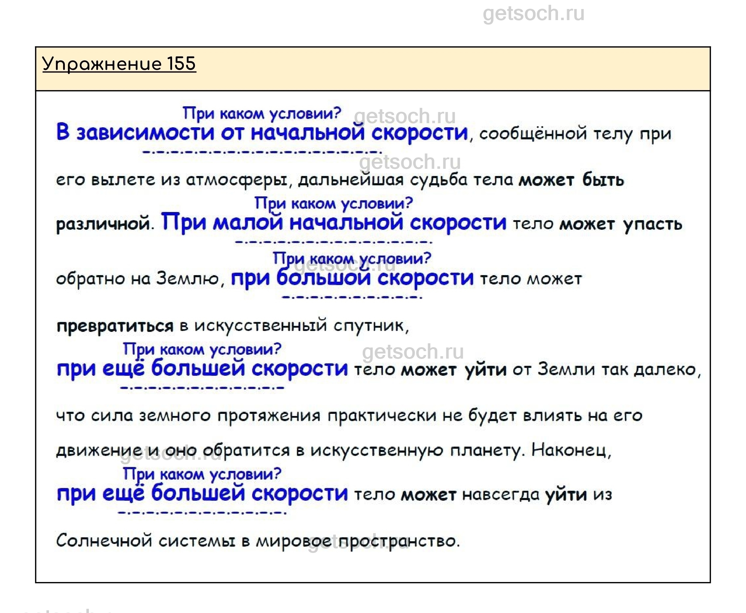 Упражнение 155. Задайте вопрос к выделенным словосочетаниям. Это обстоятельства условия. Подчеркните их при списывании. Обозначьте слова, от которых они зависят. Расставьте недостающие запятые.