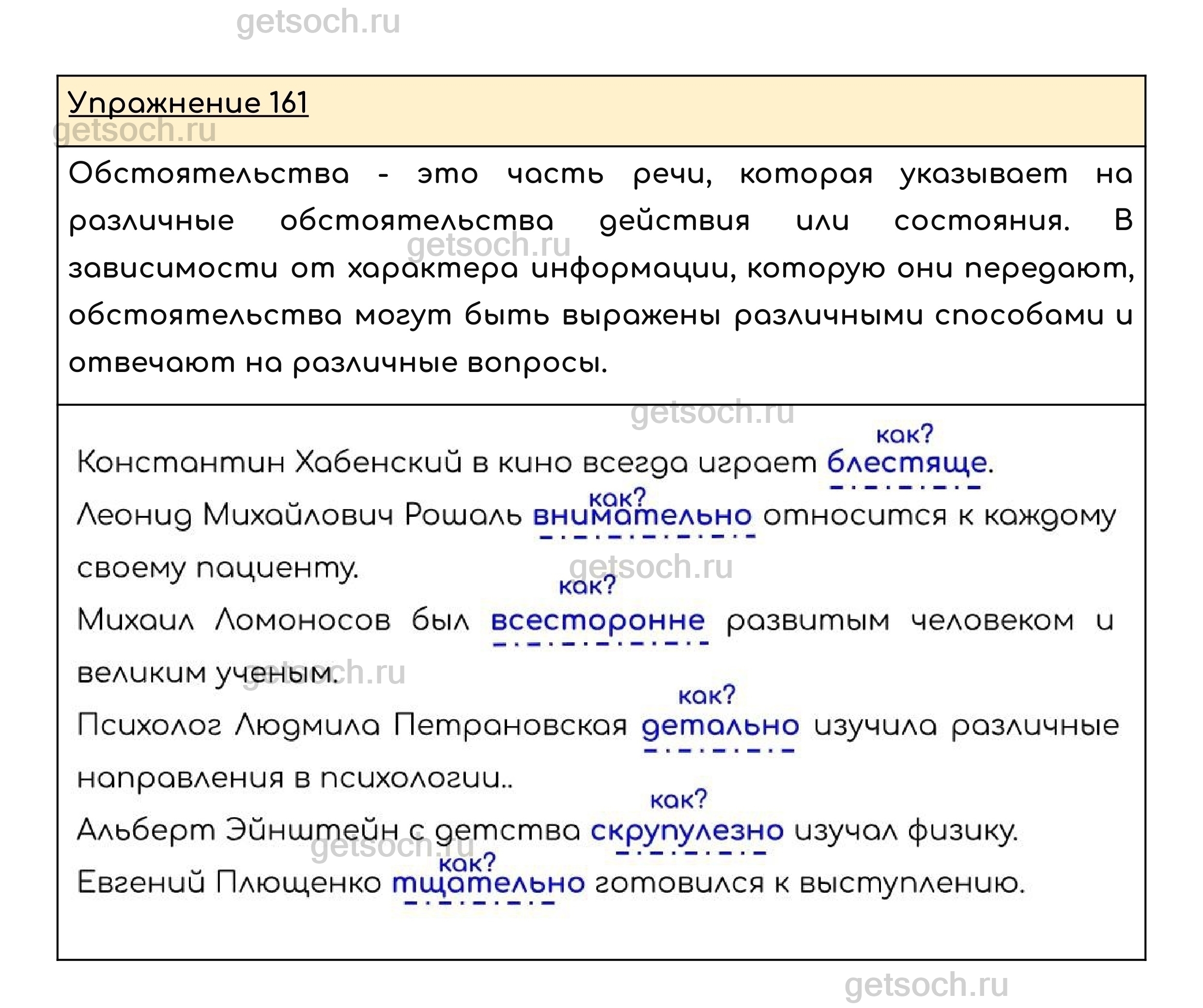 Рассмотрим ответы на Упражнение 161 из учебника по русскому языку для 8 класса Ладыженской