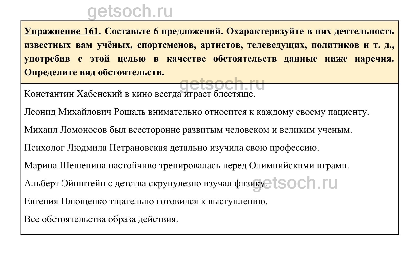 Упражнение 161. Составьте 6 предложений. Охарактеризуйте в них деятельность известных вам учёных, спортсменов, артистов, телеведущих, политиков и т. д., употребив с этой целью в качестве обстоятельств данные ниже наречия. Определите вид обстоятельств.