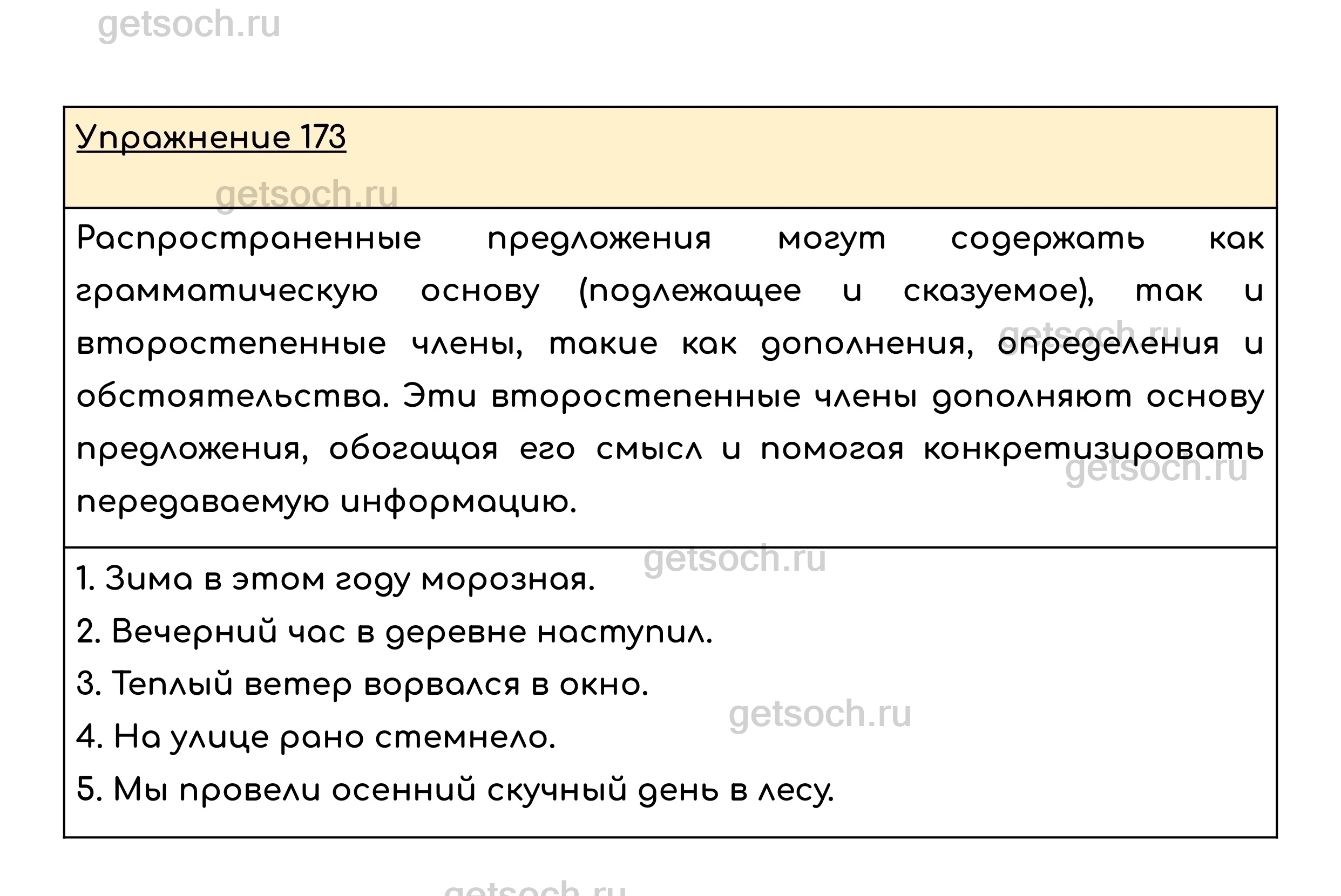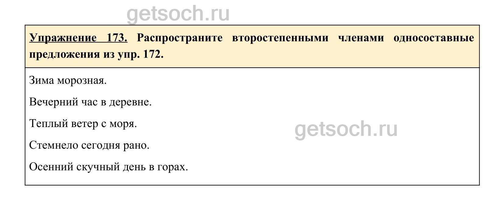 Упражнение 173. Распространите второстепенными членами односоставные предложения из упр. 172.
