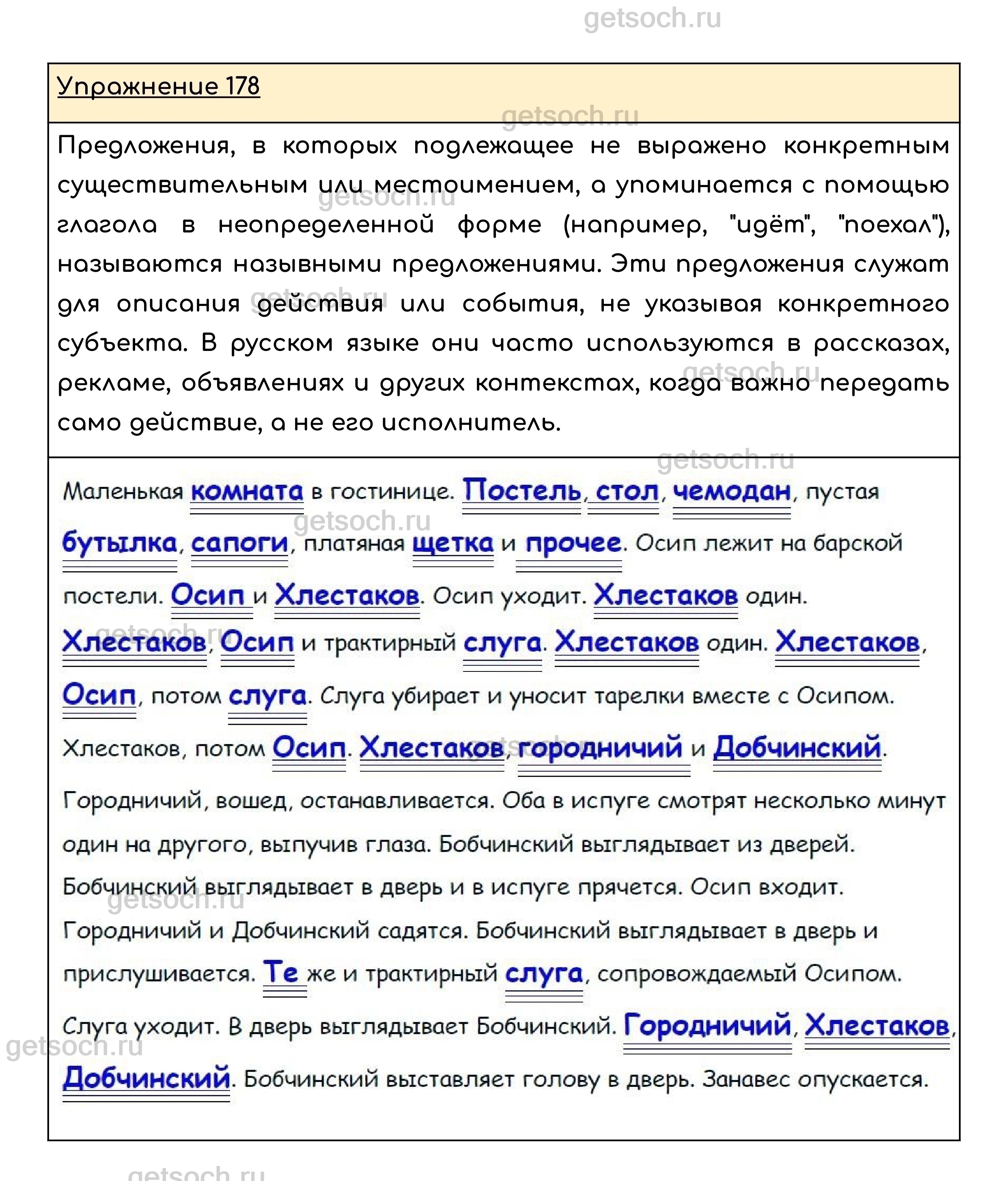 Рассмотрим ответы на Упражнение 178 из учебника по русскому языку для 8 класса Ладыженской