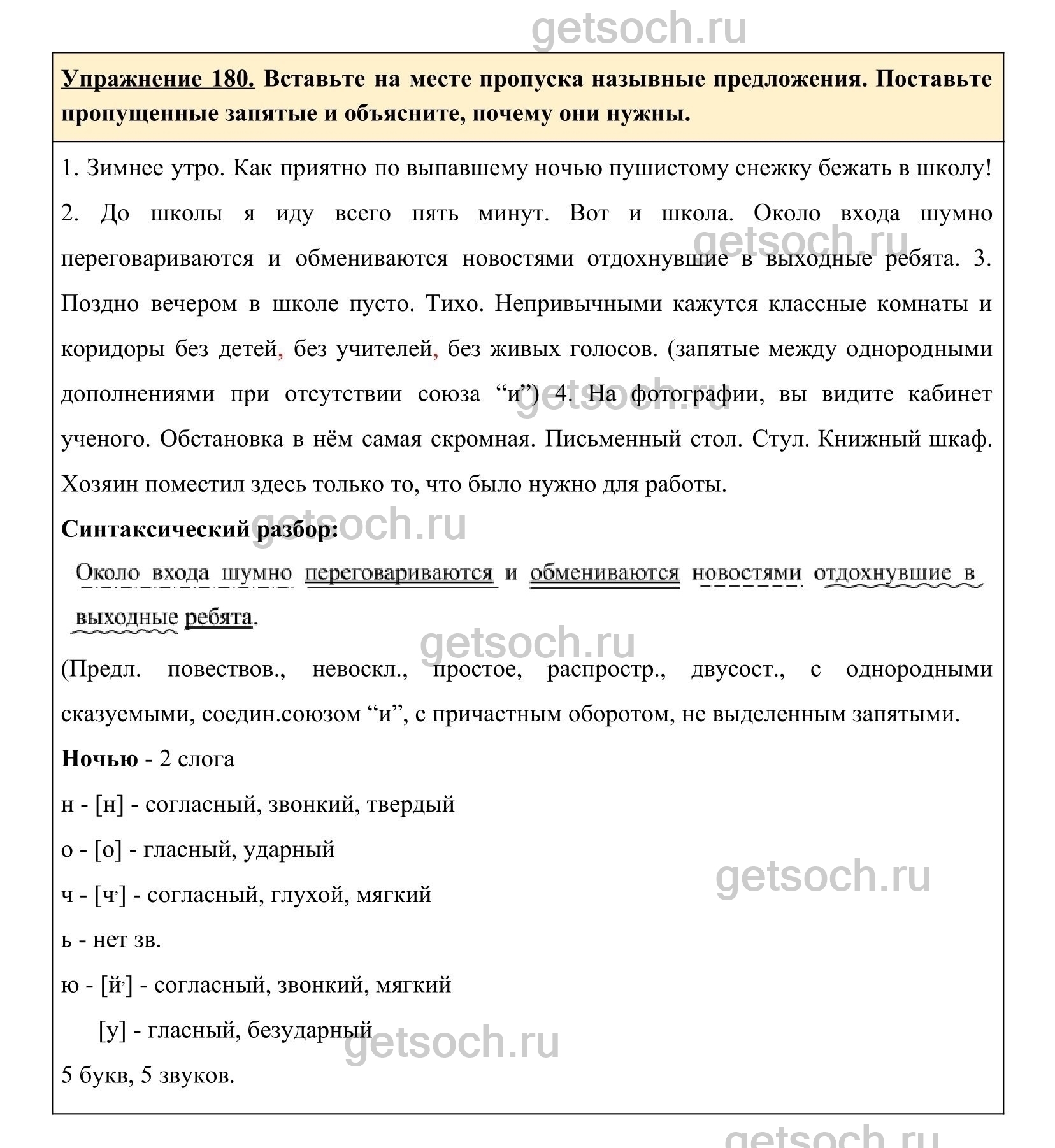 Рассмотрим ответы на Упражнение 180 из учебника по русскому языку для 8 класса Ладыженской