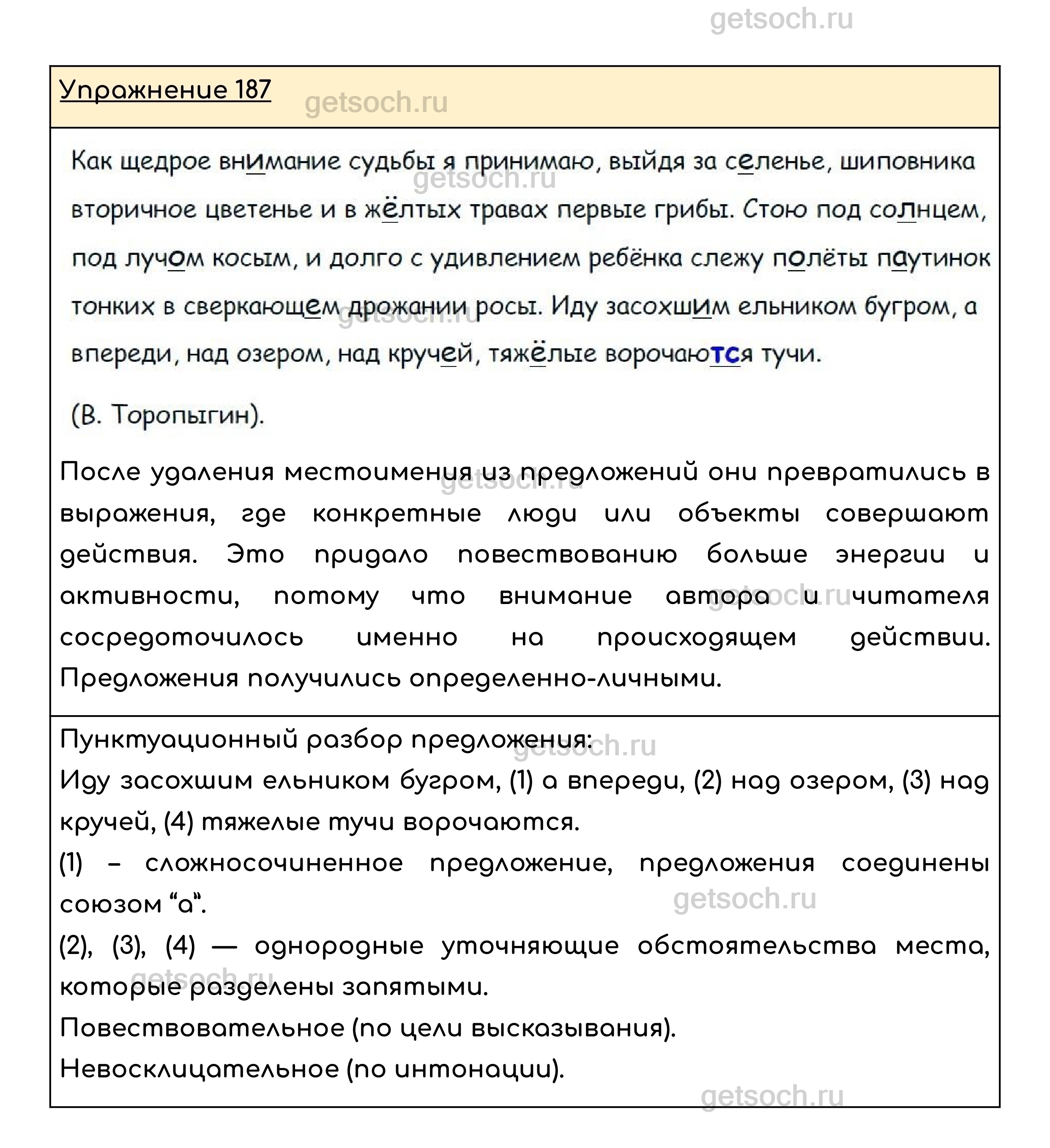Рассмотрим ответы на Упражнение 187 из учебника по русскому языку для 8 класса Ладыженской