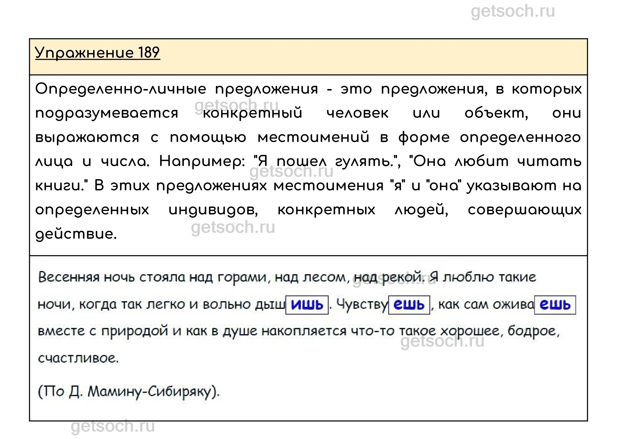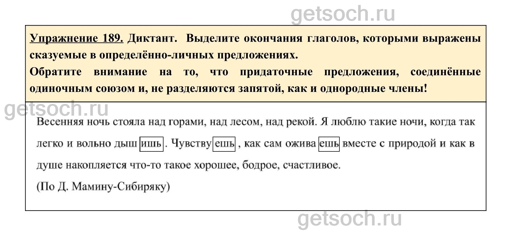 Упражнение 189. Диктант. Выделите окончания глаголов, которыми выражены сказуемые в определённо-личных предложениях.