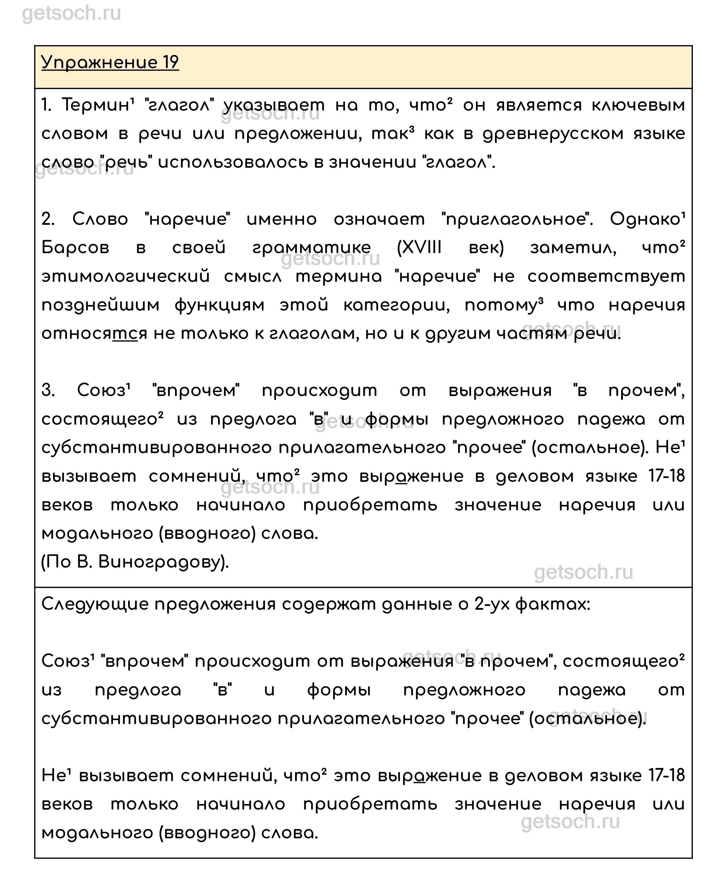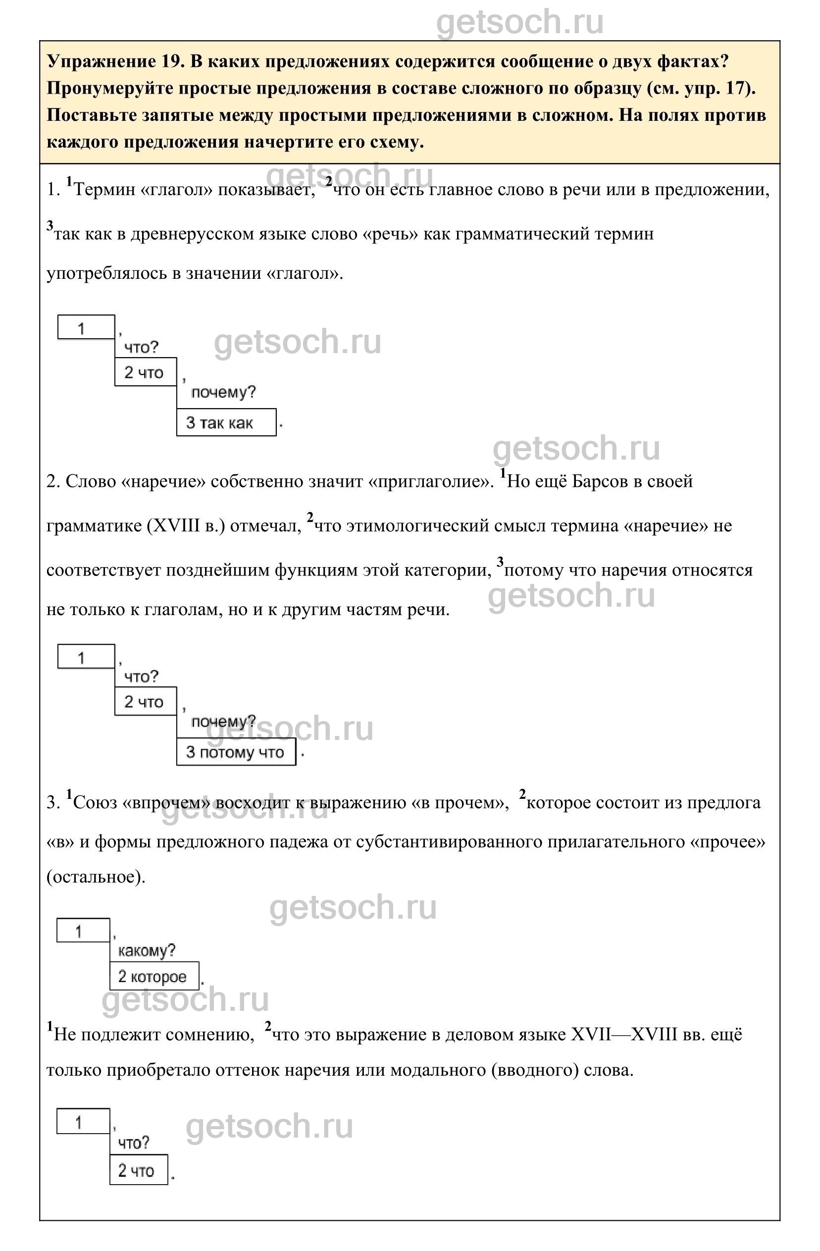Рассмотрим ответы на Упражнение 19 из учебника по русскому языку для 8 класса Ладыженской