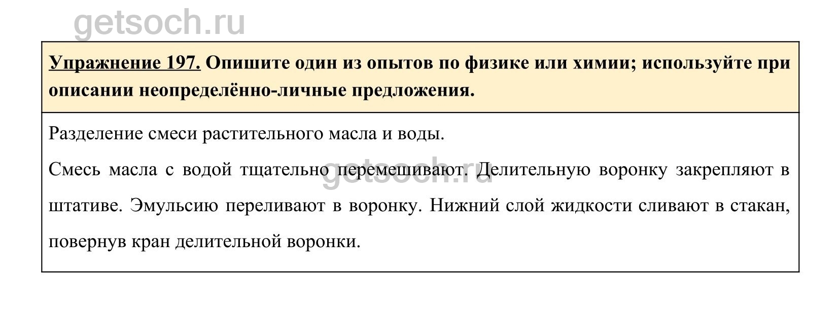 Упражнение 197. Опишите один из опытов по физике или химии; используйте при описании неопределённо-личные предложения.