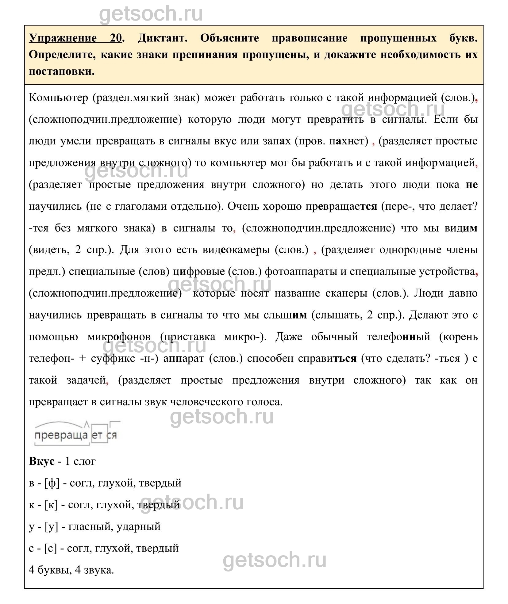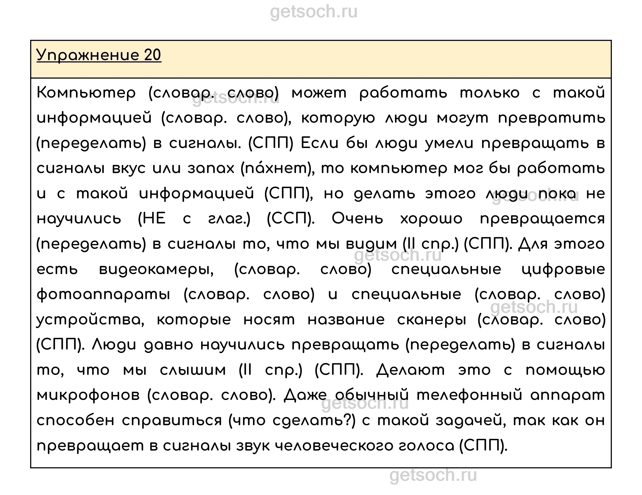 Рассмотрим ответы на Упражнение 20 из учебника по русскому языку для 8 класса Ладыженской
