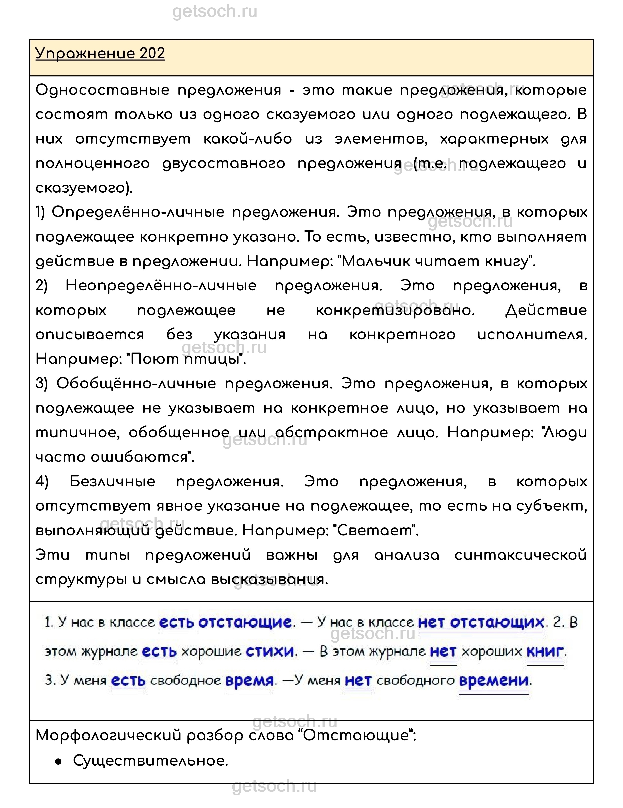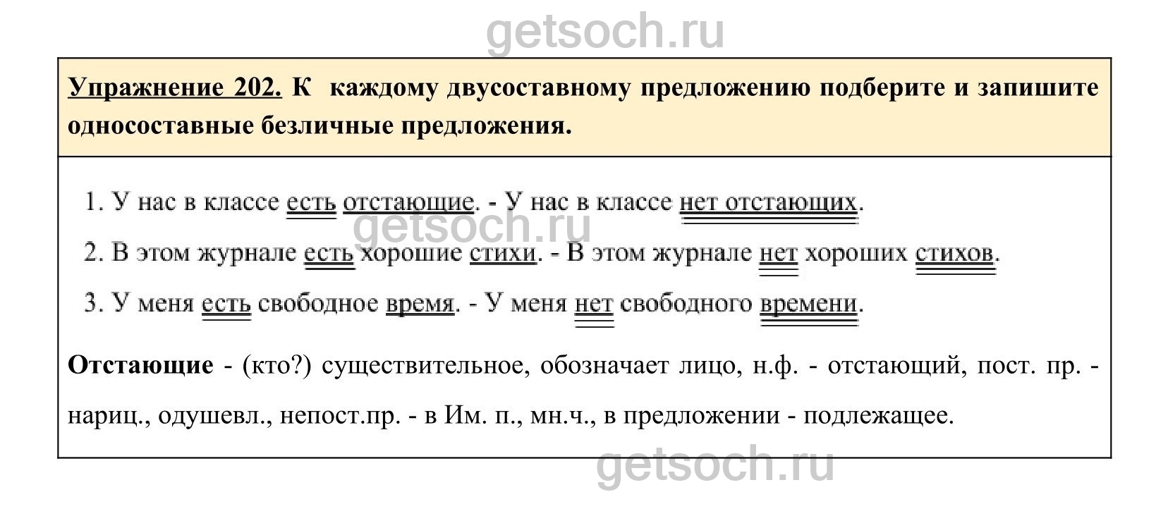 Упражнение 202. К каждому двусоставному предложению подберите и запишите односоставные безличные предложения.