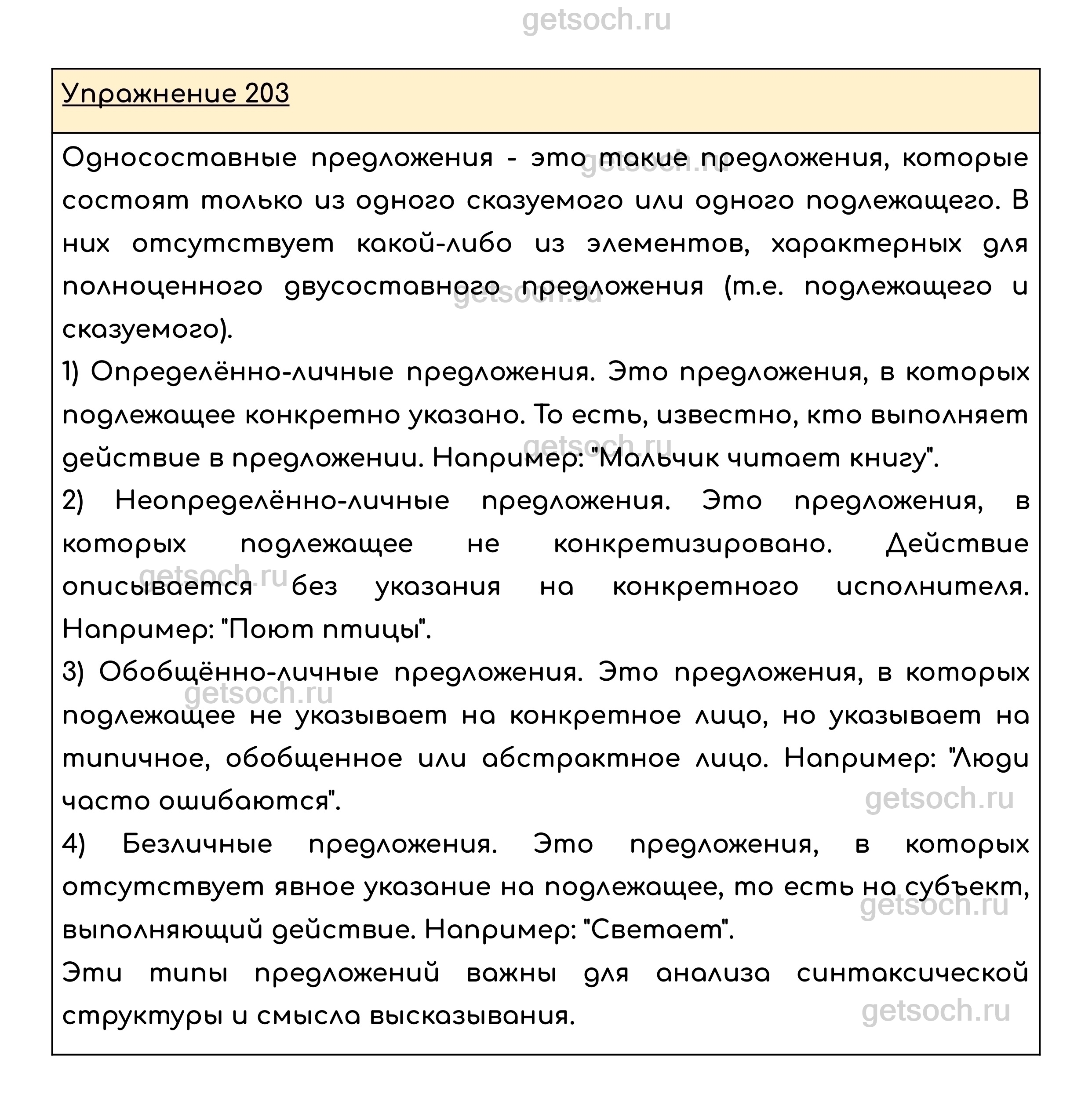 Рассмотрим ответы на Упражнение 203 из учебника по русскому языку для 8 класса Ладыженской
