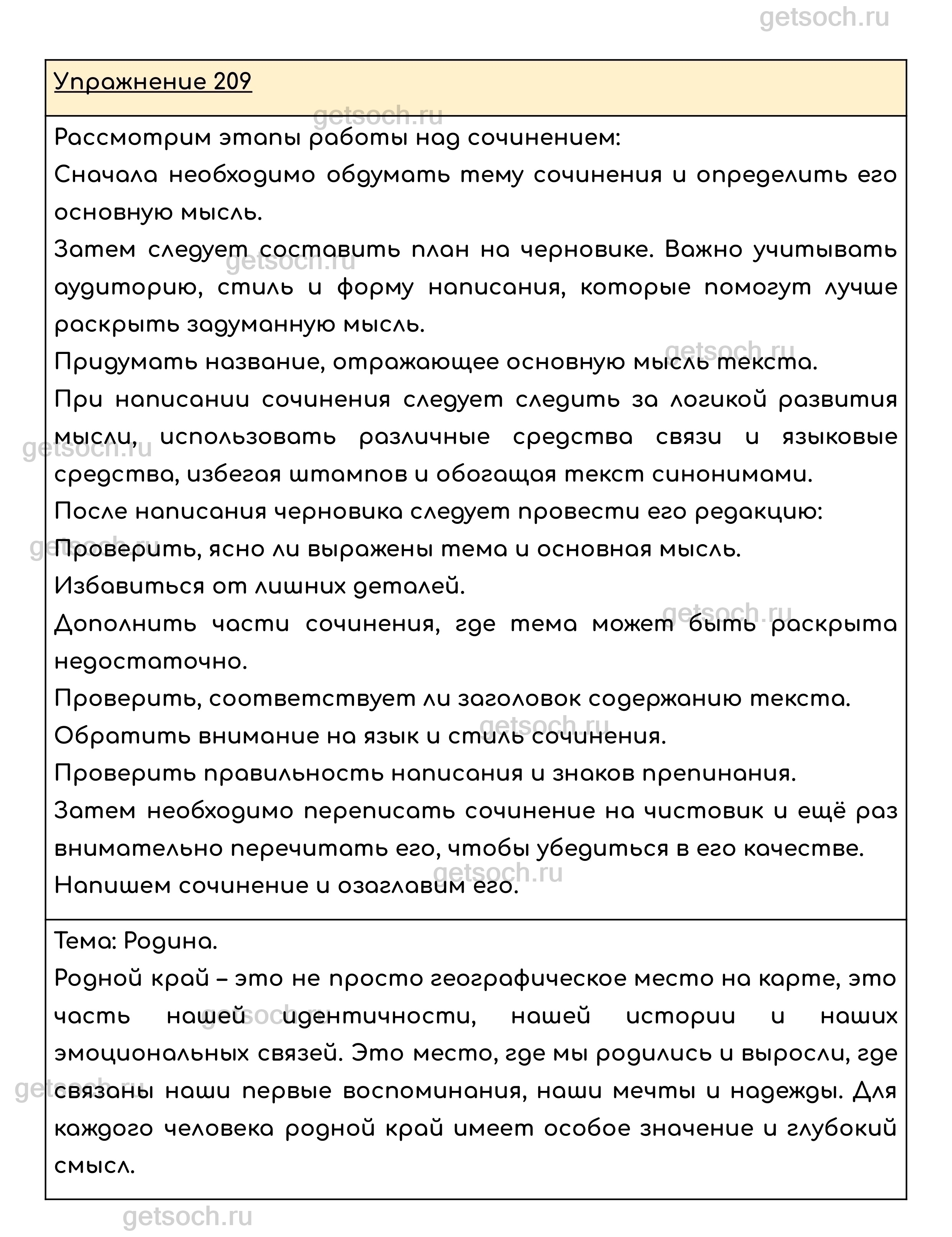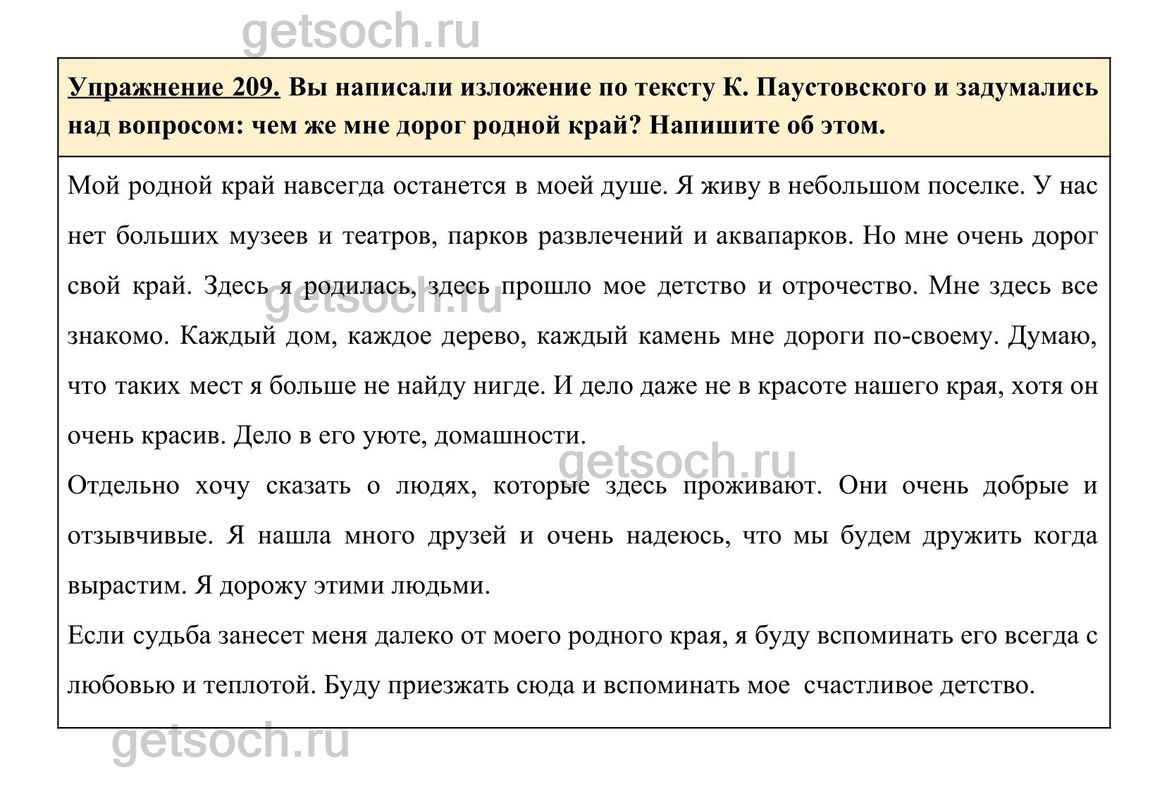 Упражнение 209. Вы написали изложение по тексту К. Паустовского и задумались над вопросом: чем же мне дорог родной край? Напишите об этом.
