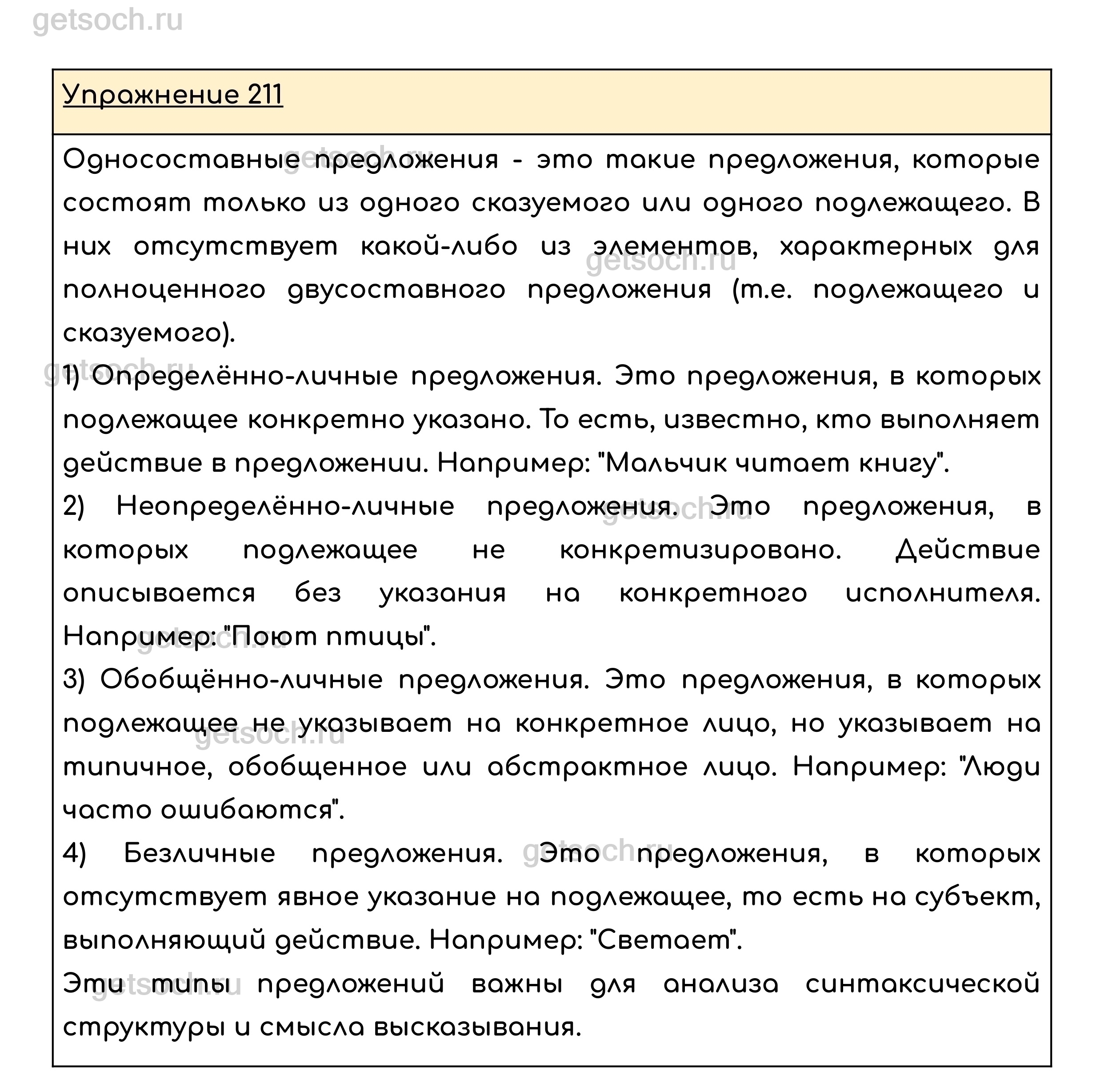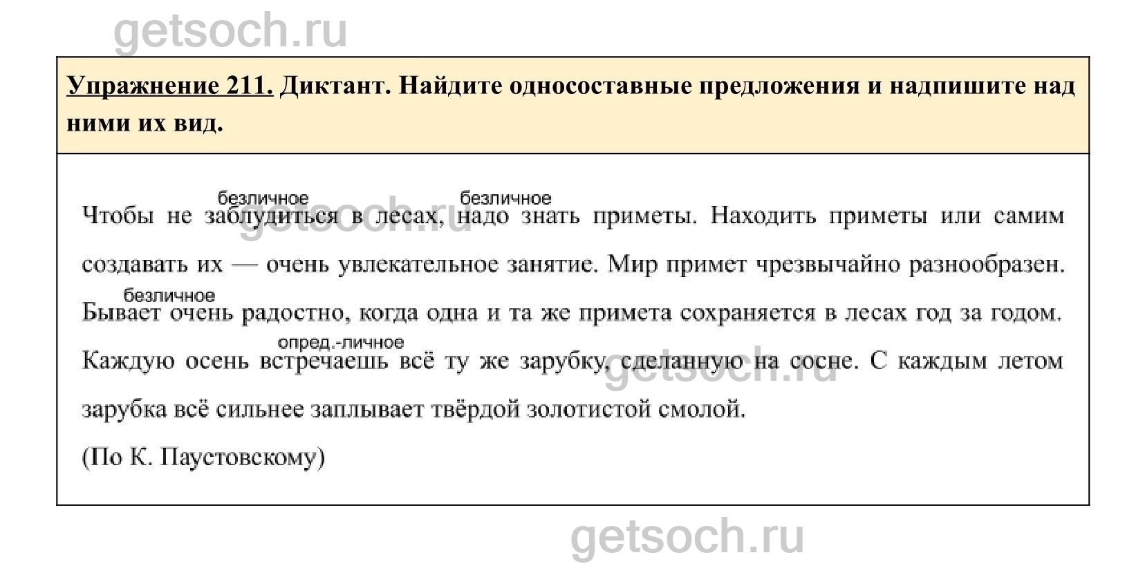 Упражнение 211. Диктант. Найдите односоставные предложения и надпишите над ними их вид.