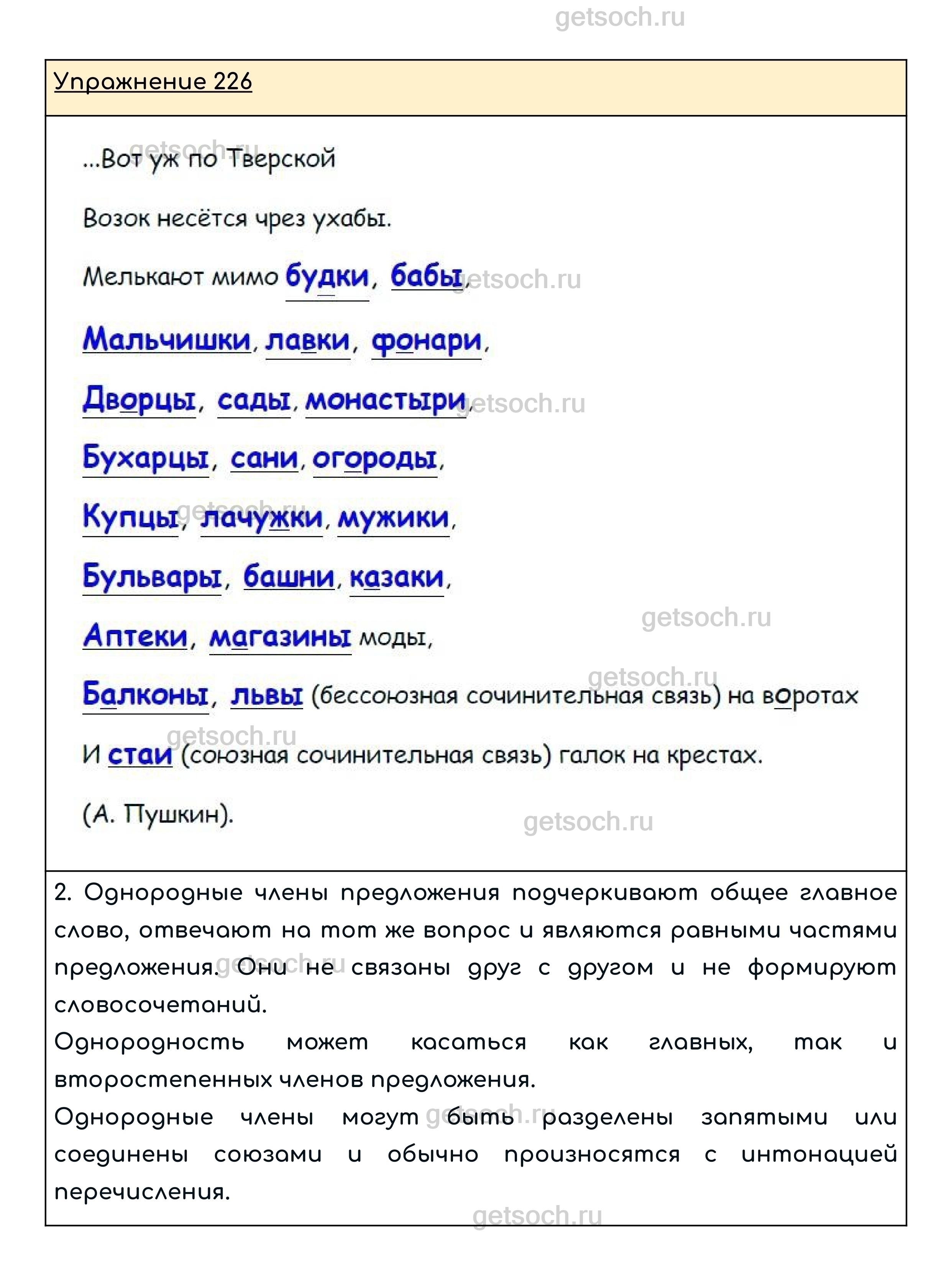 Рассмотрим ответы на Упражнение 226 из учебника по русскому языку для 8 класса Ладыженской