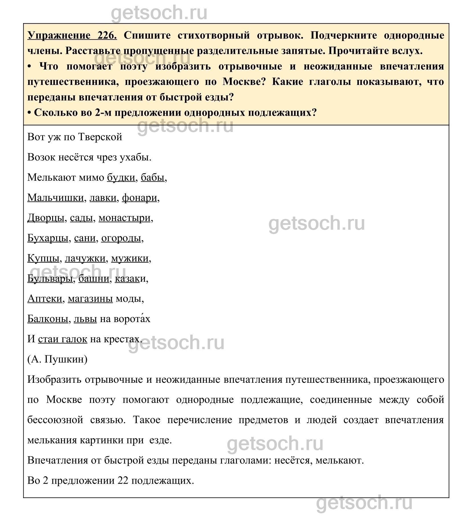 Упражнение 226. Спишите стихотворный отрывок. Подчеркните однородные члены. Расставьте пропущенные разделительные запятые. Прочитайте вслух.