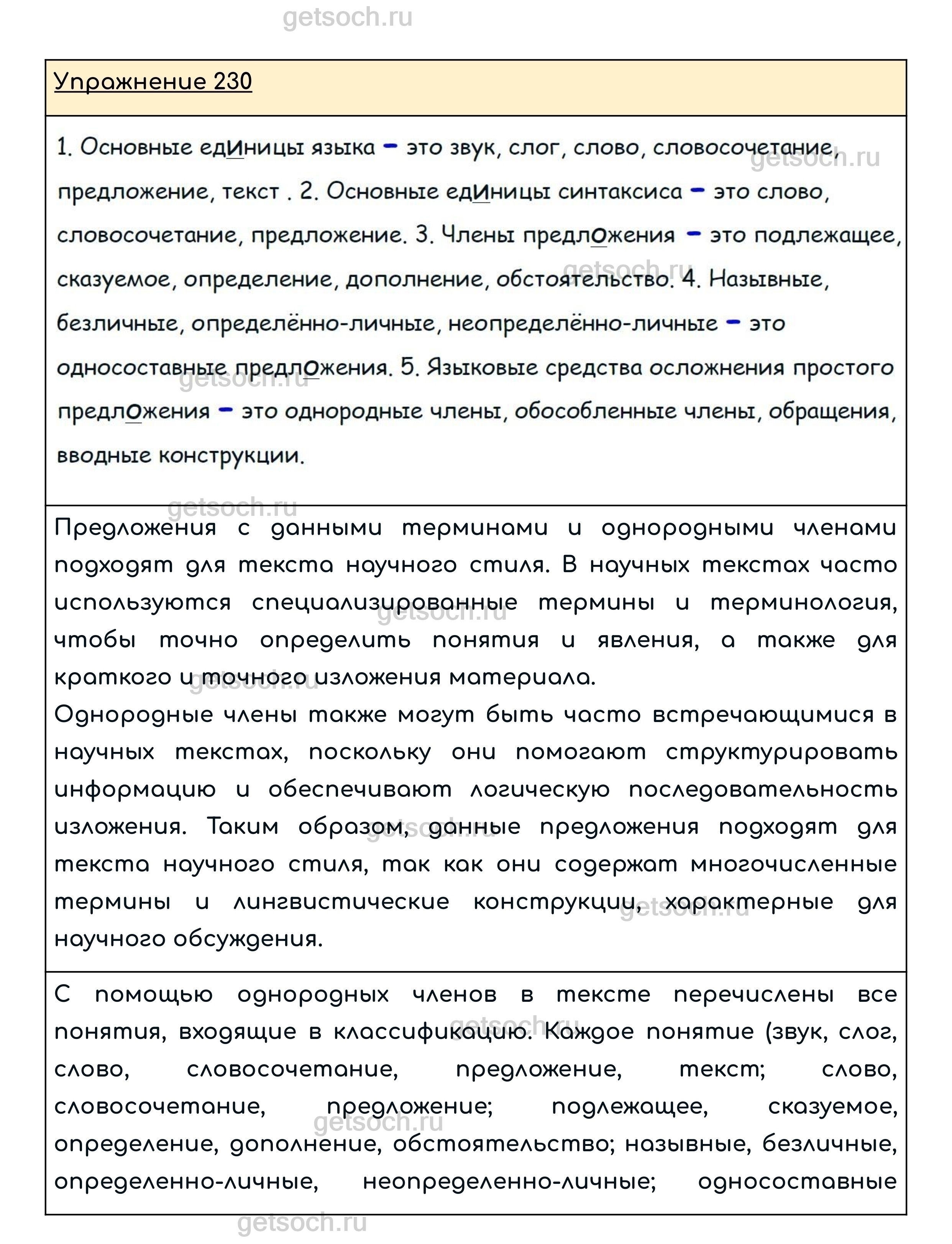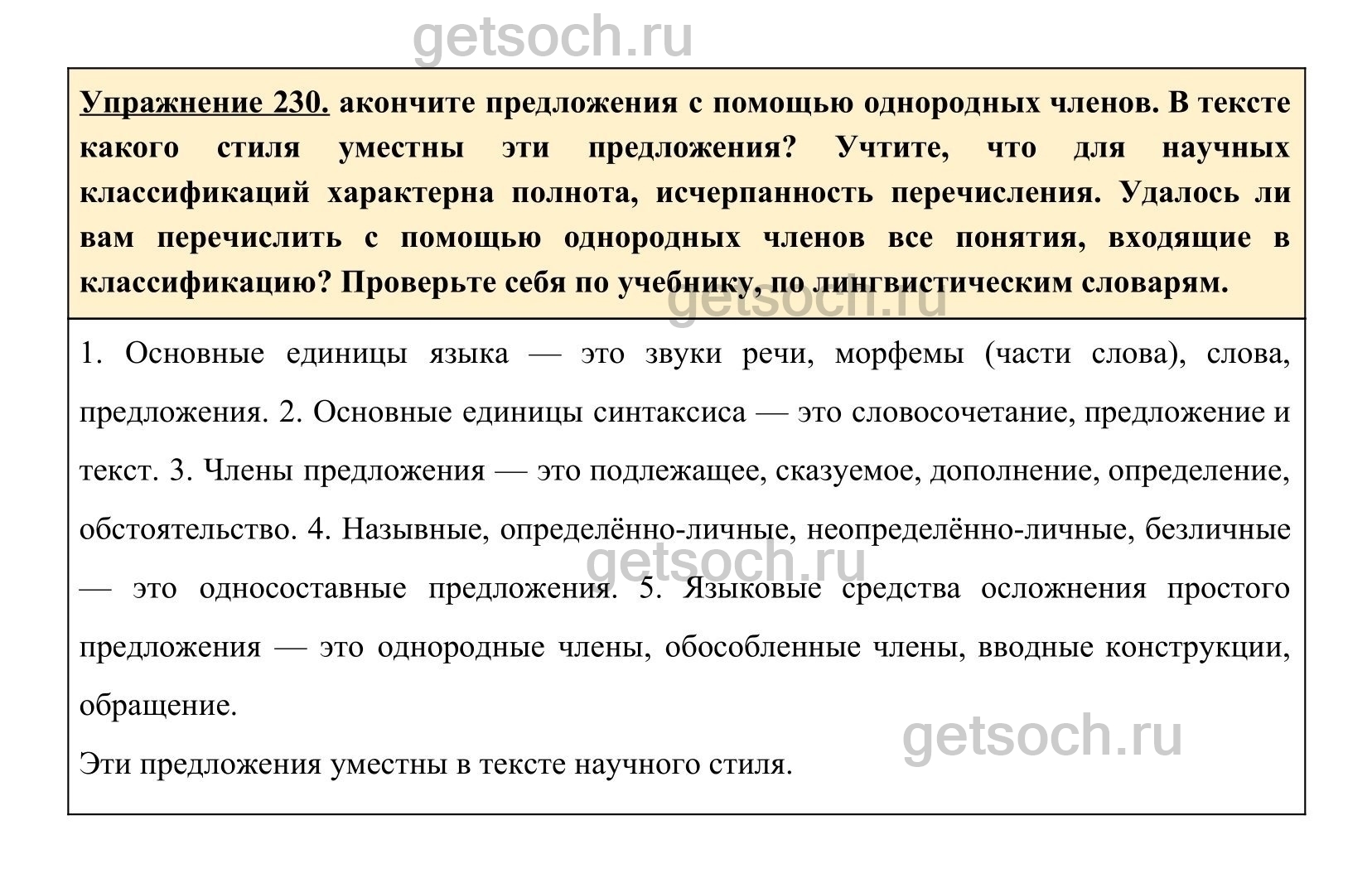 Рассмотрим ответы на Упражнение 230 из учебника по русскому языку для 8 класса Ладыженской