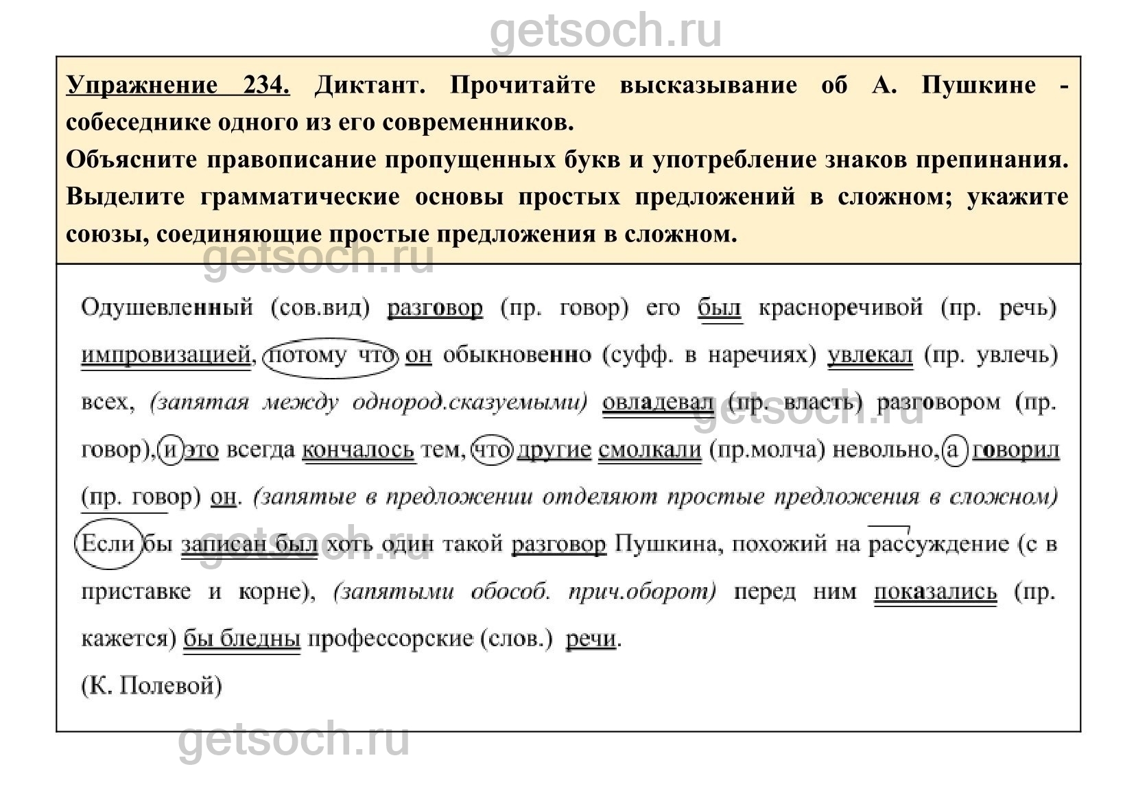 Упражнение 234. Диктант. Прочитайте высказывание об А. Пушкине – собеседнике одного из его современников.