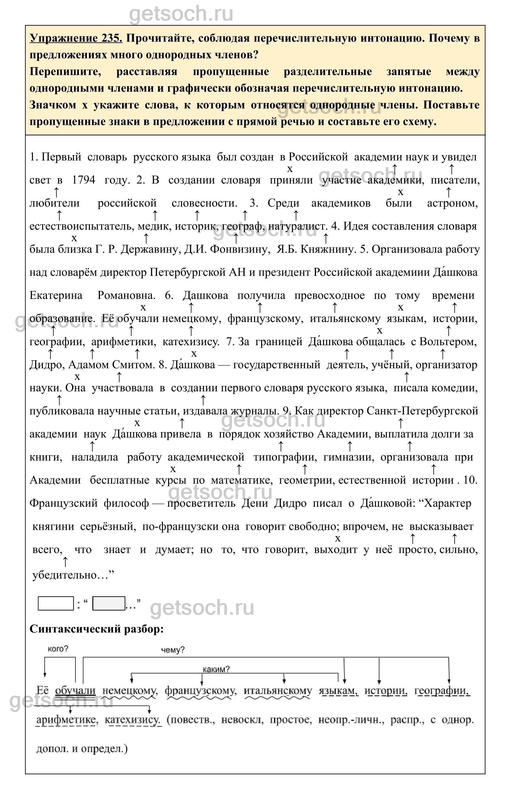 Рассмотрим ответы на Упражнение 235 из учебника по русскому языку для 8 класса Ладыженской