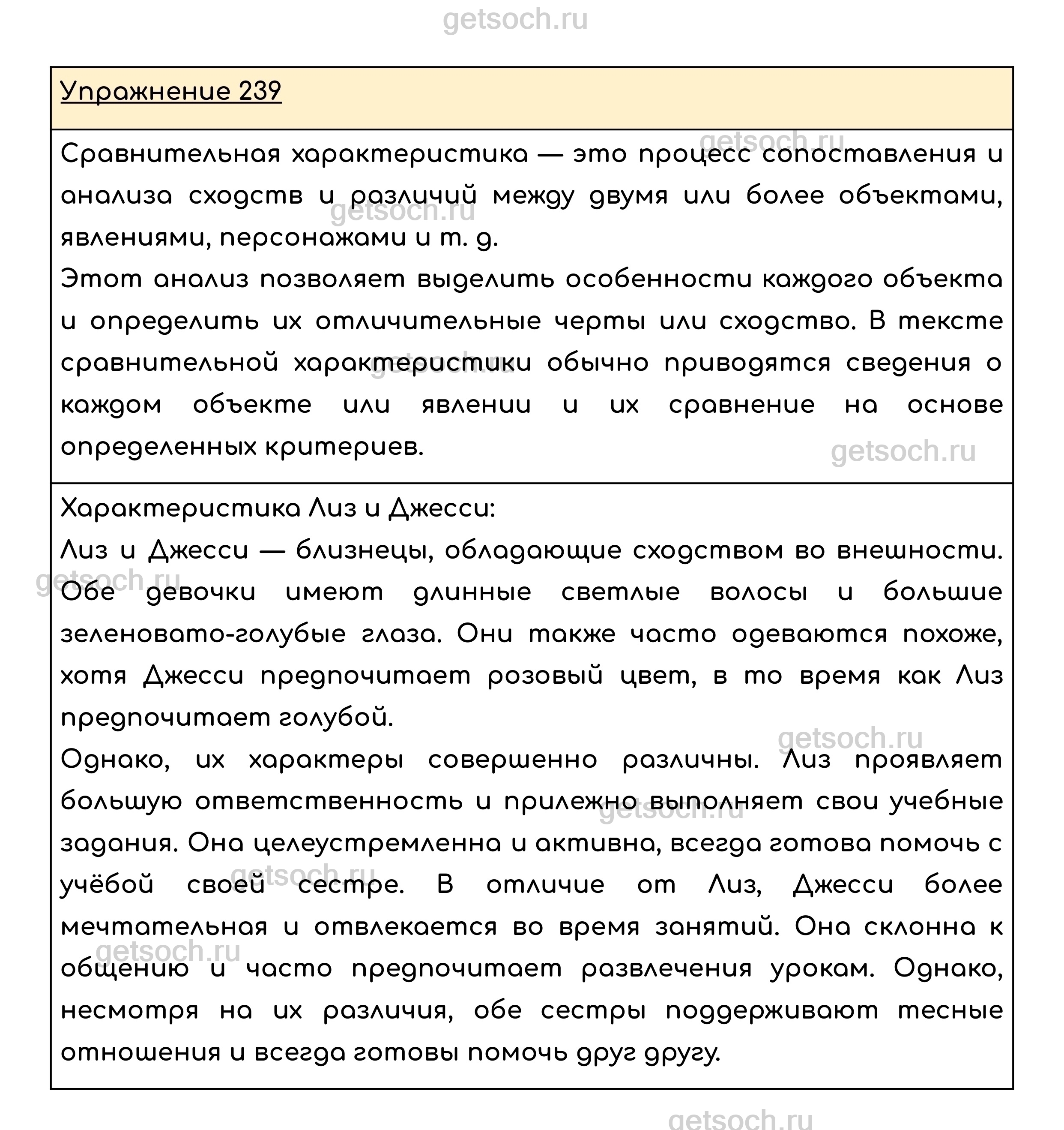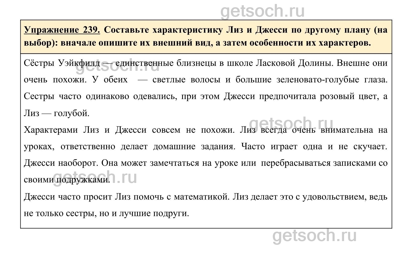 Упражнение 239. Составьте характеристику Лиз и Джесси по другому плану (на выбор): вначале опишите их внешний вид, а затем особенности их характеров.