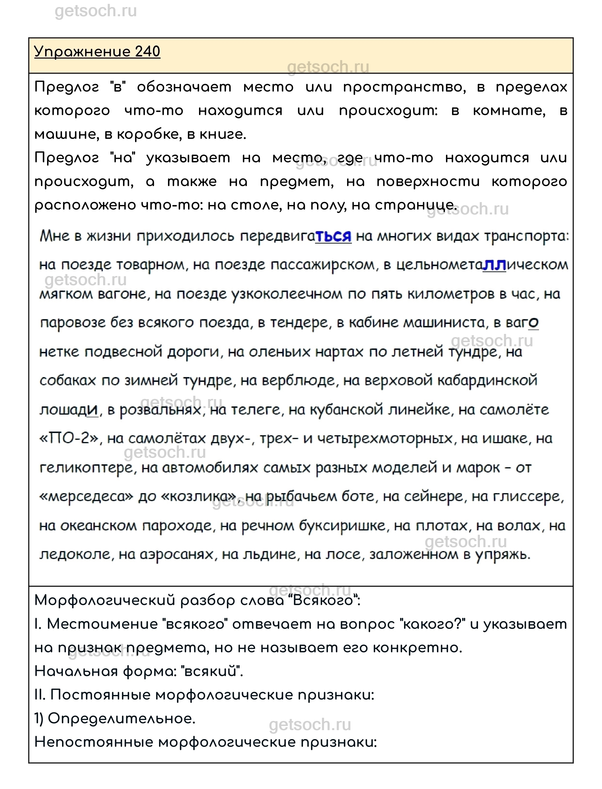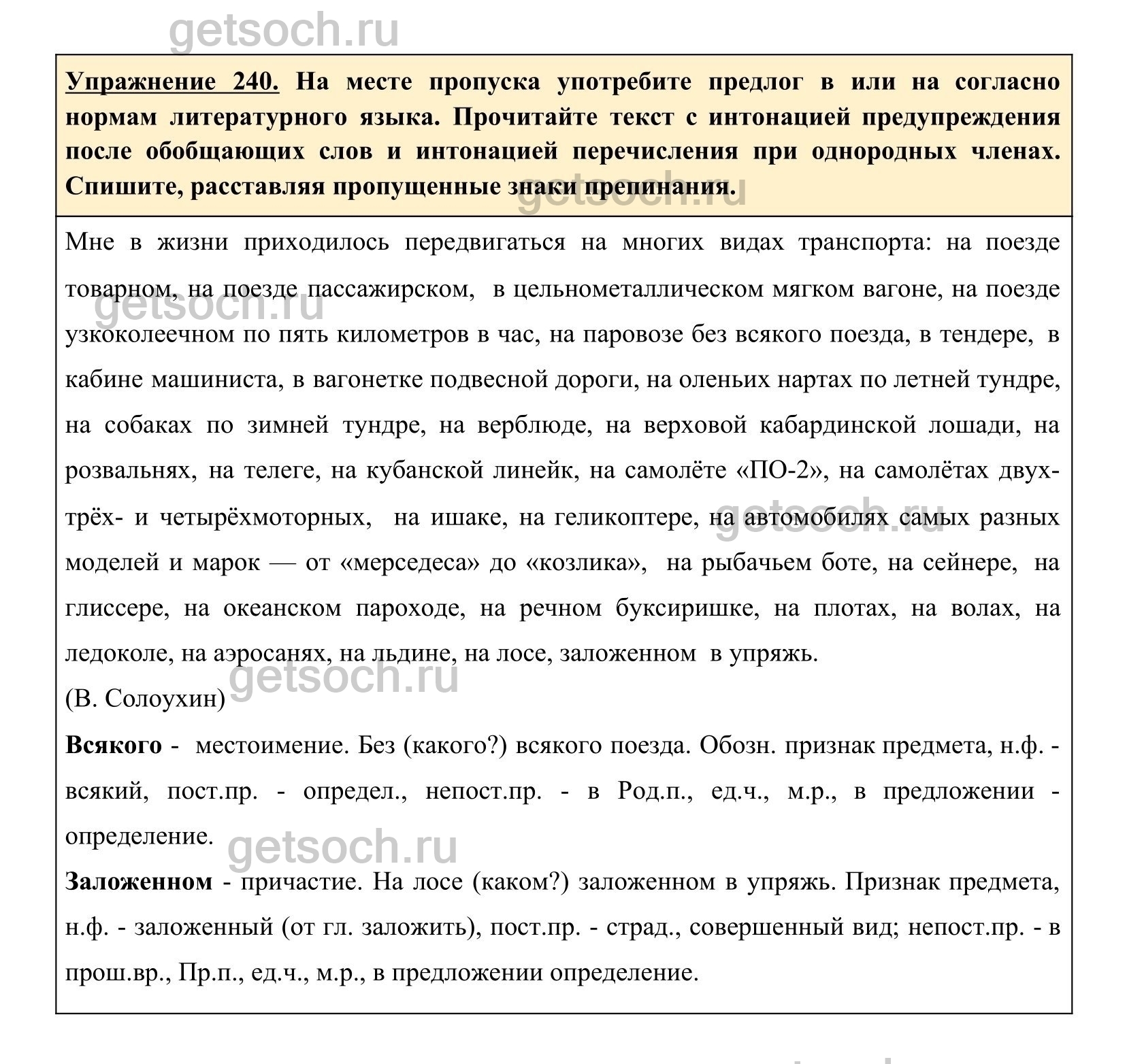 Рассмотрим ответы на Упражнение 240 из учебника по русскому языку для 8 класса Ладыженской