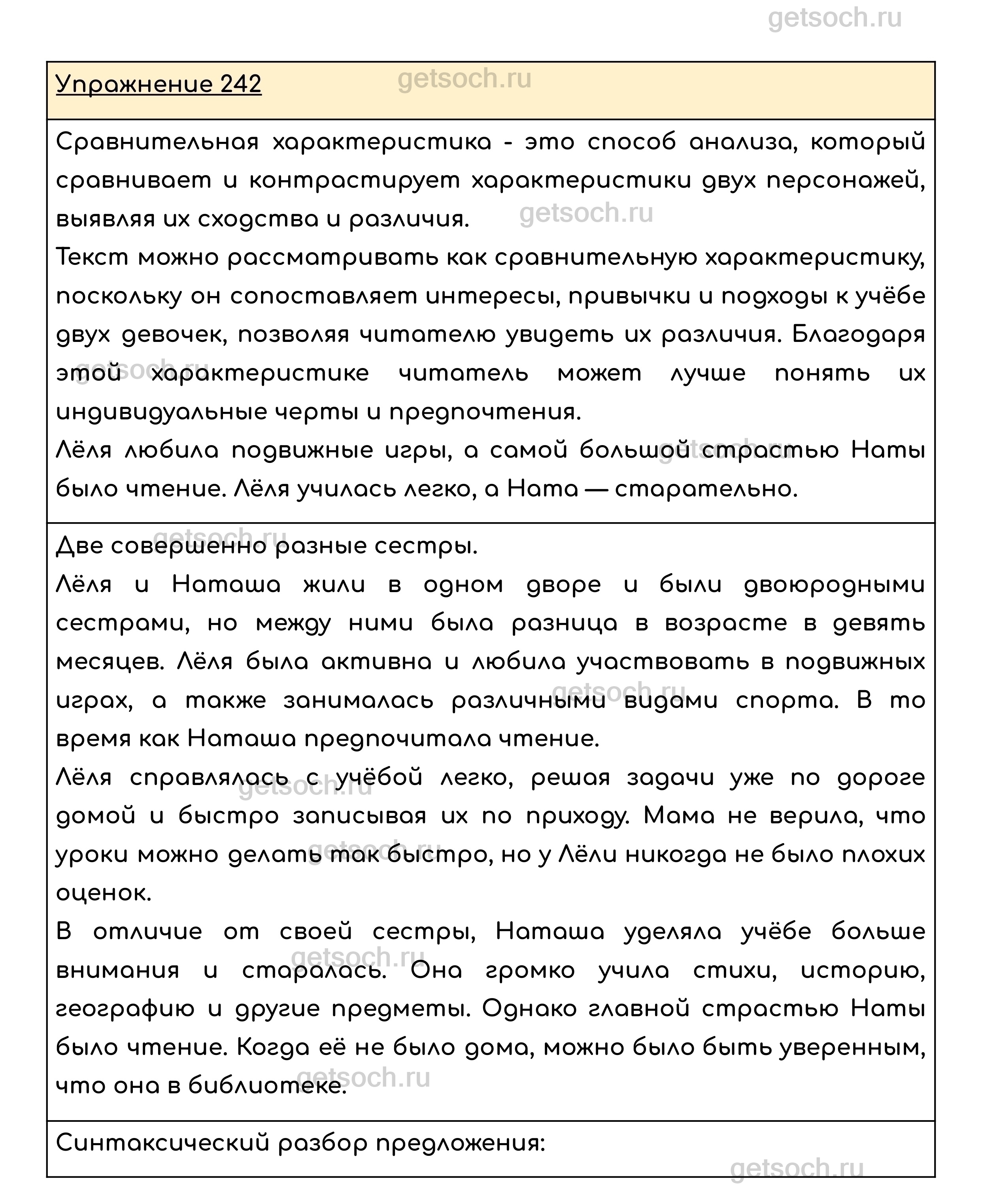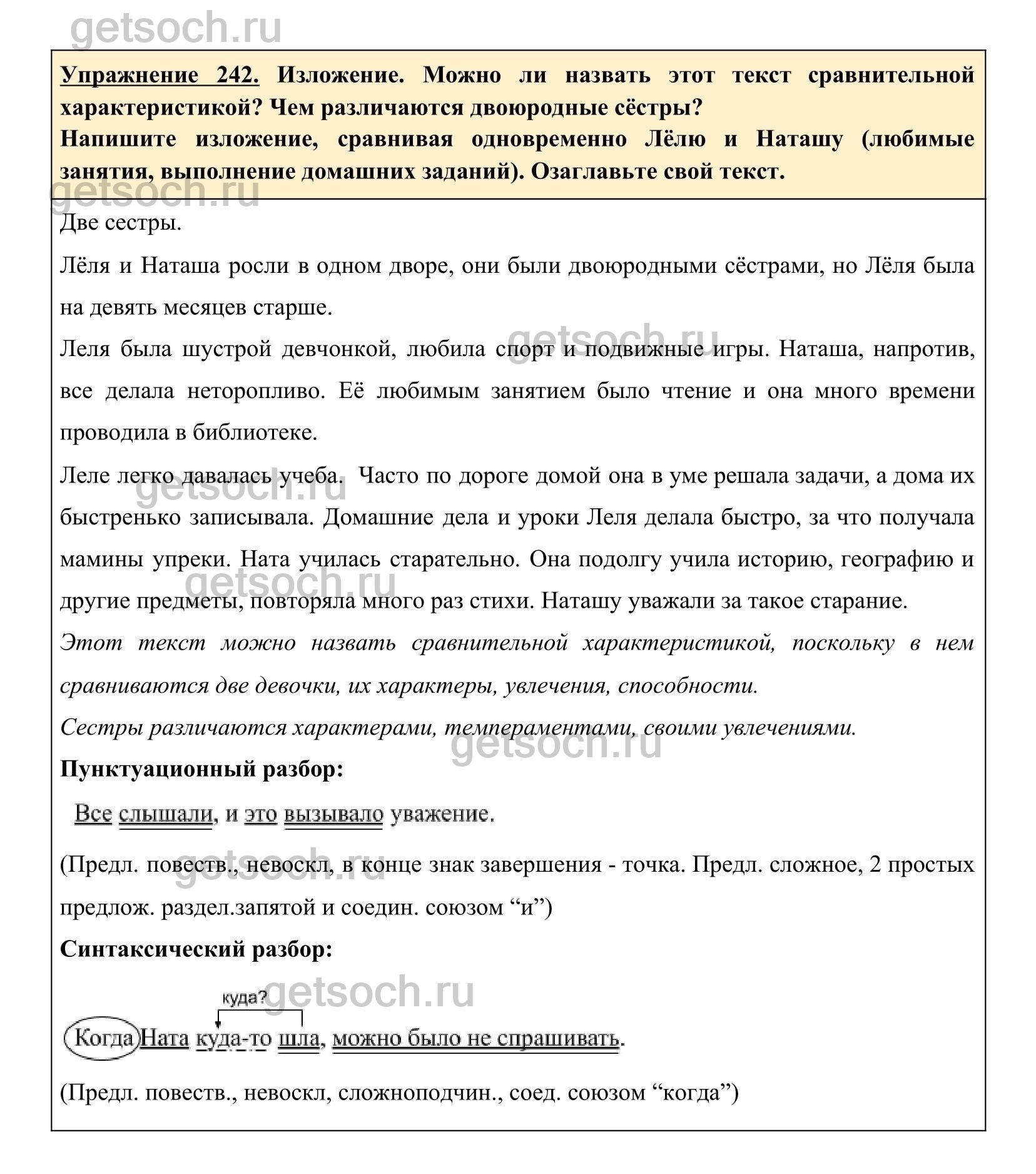 Упражнение 242. Изложение. Можно ли назвать этот текст сравнительной характеристикой? Чем различаются двоюродные сёстры?