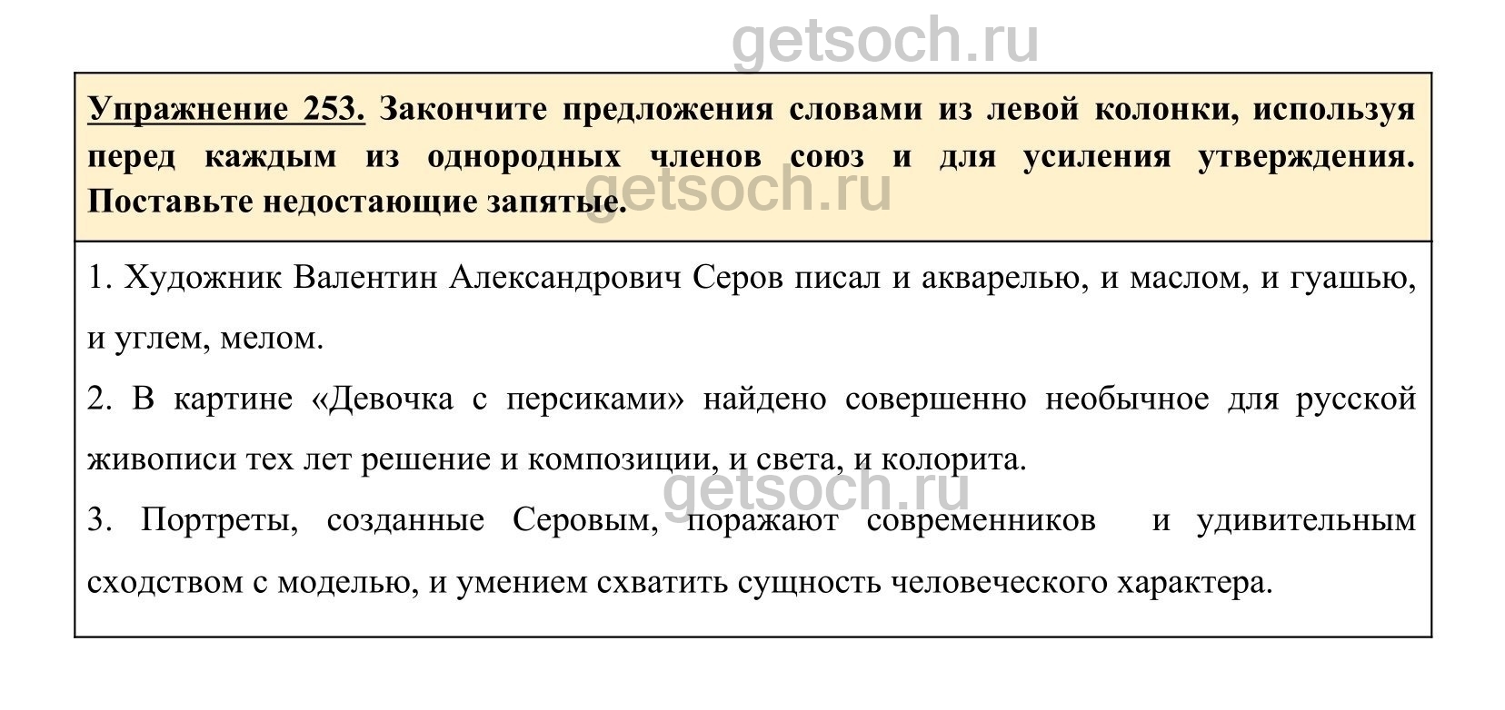 Рассмотрим ответы на Упражнение 253 из учебника по русскому языку для 8 класса Ладыженской