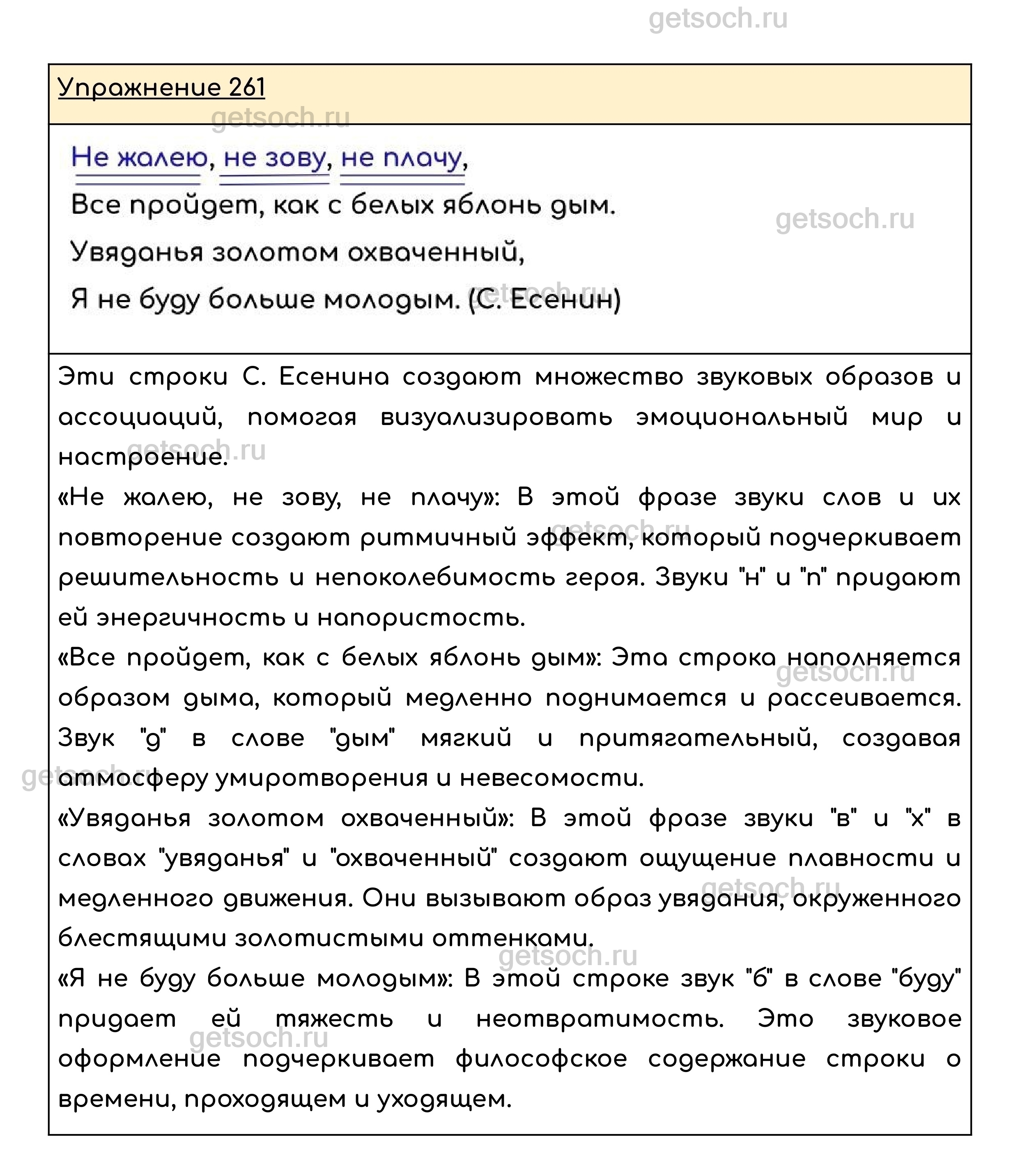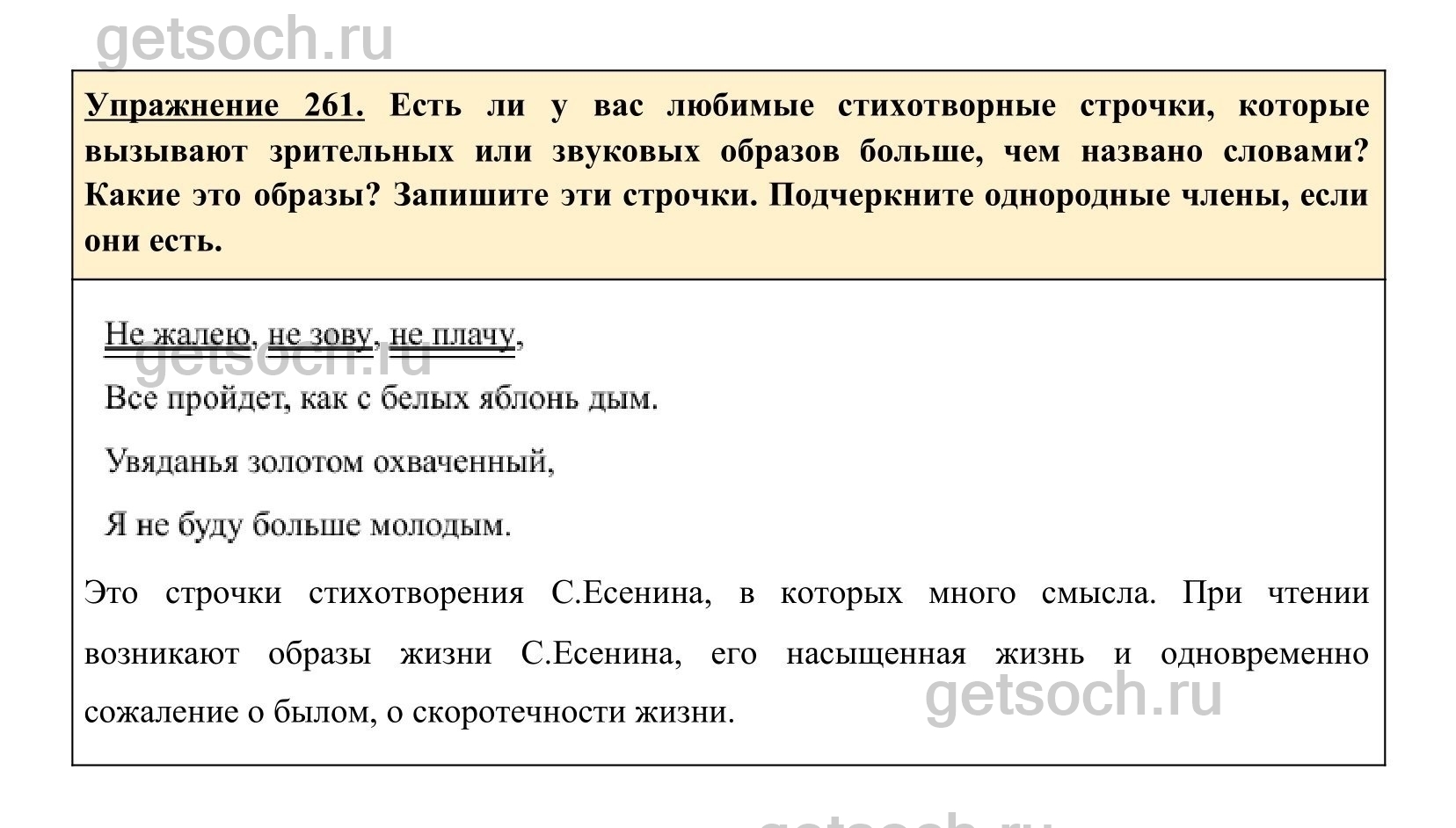 Рассмотрим ответы на Упражнение 261 из учебника по русскому языку для 8 класса Ладыженской