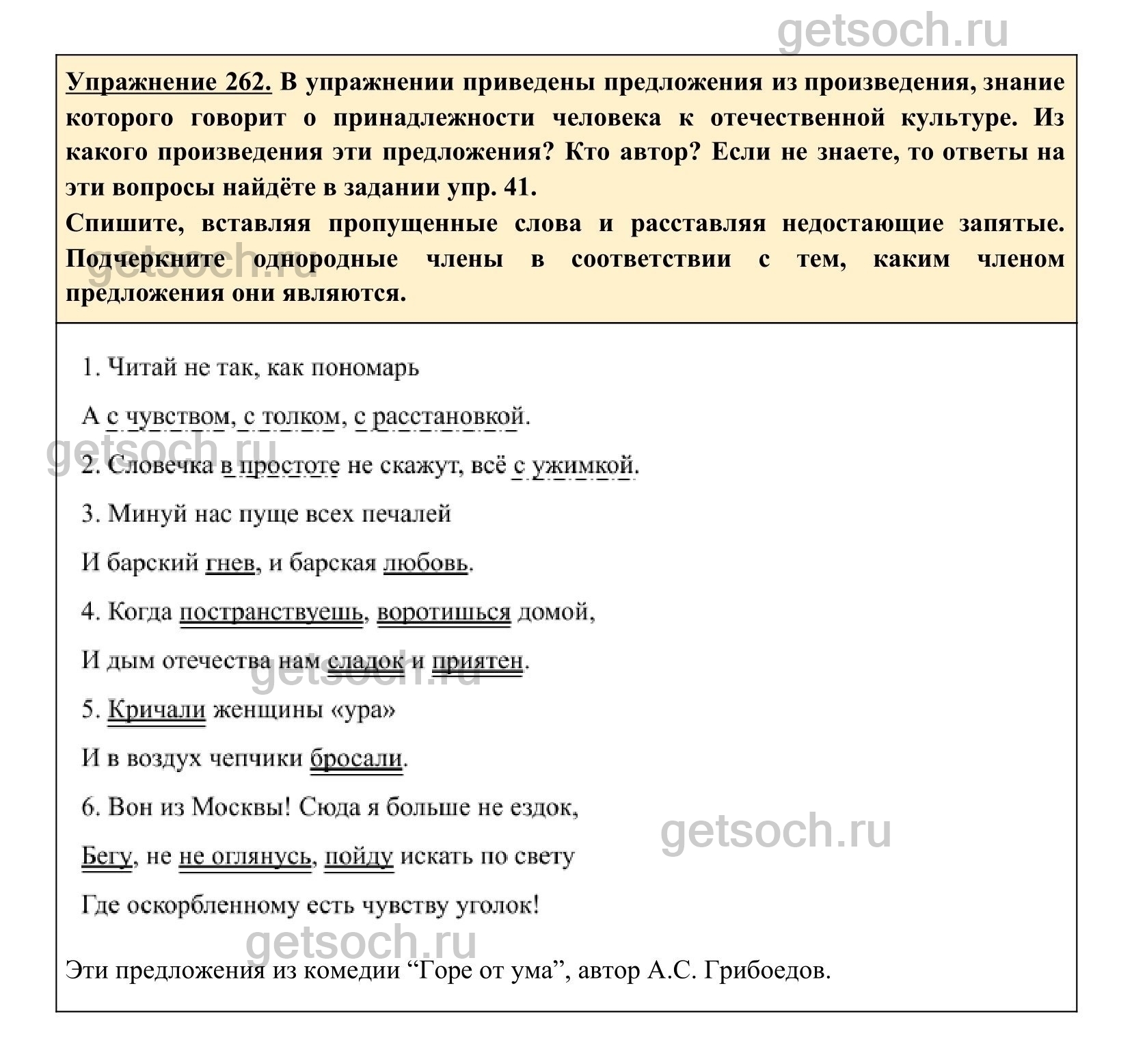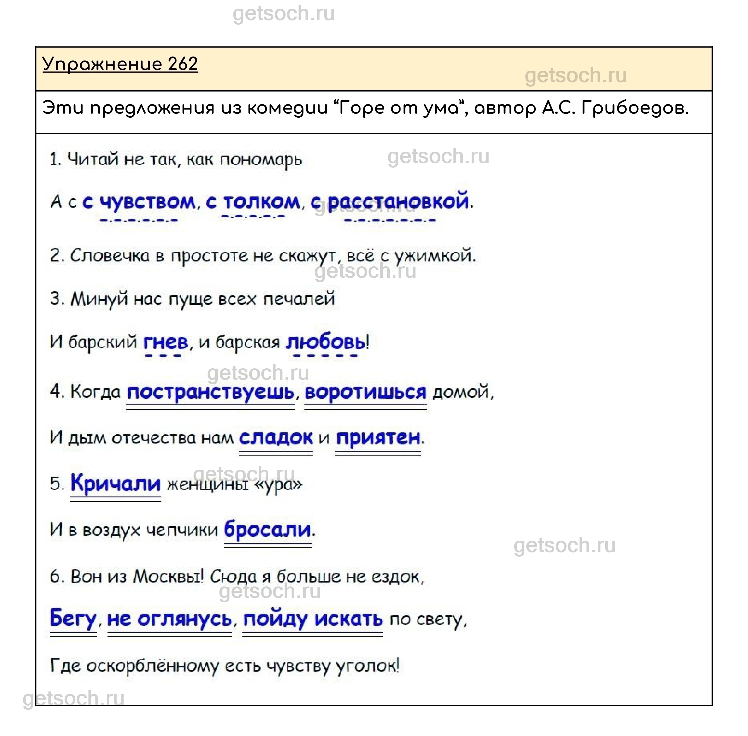 Рассмотрим ответы на Упражнение 262 из учебника по русскому языку для 8 класса Ладыженской