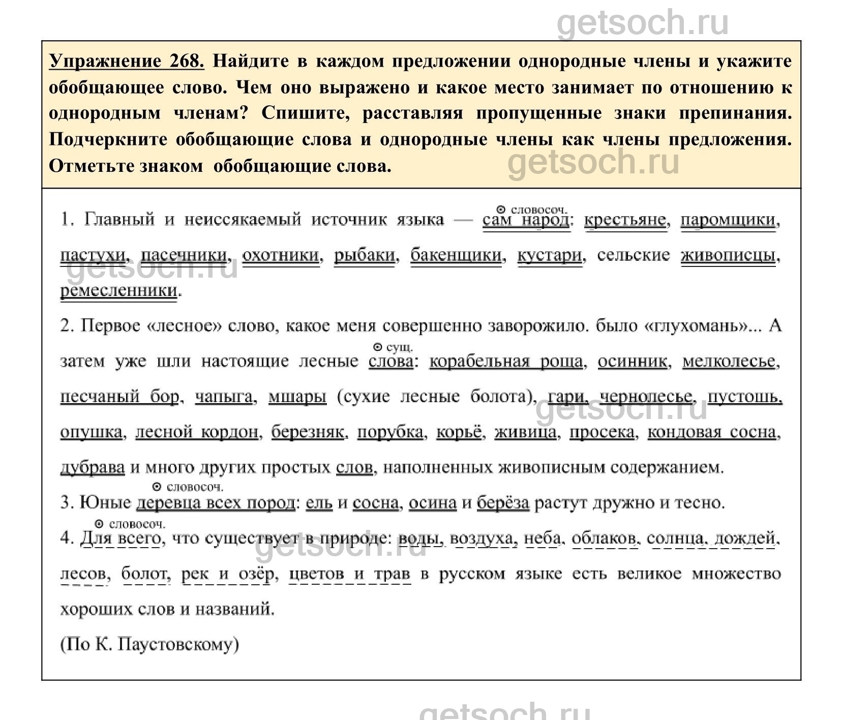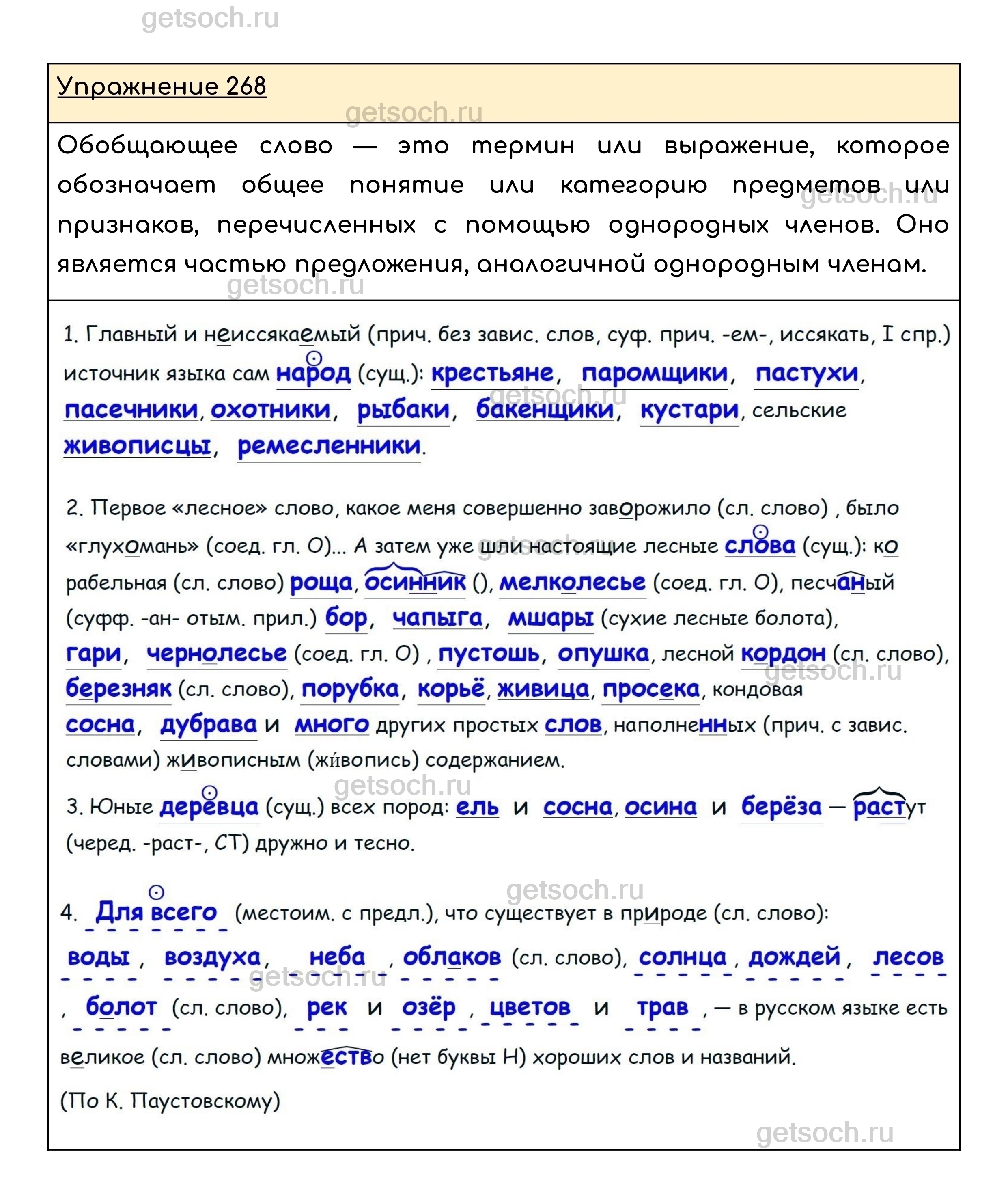 Рассмотрим ответы на Упражнение 268 из учебника по русскому языку для 8 класса Ладыженской